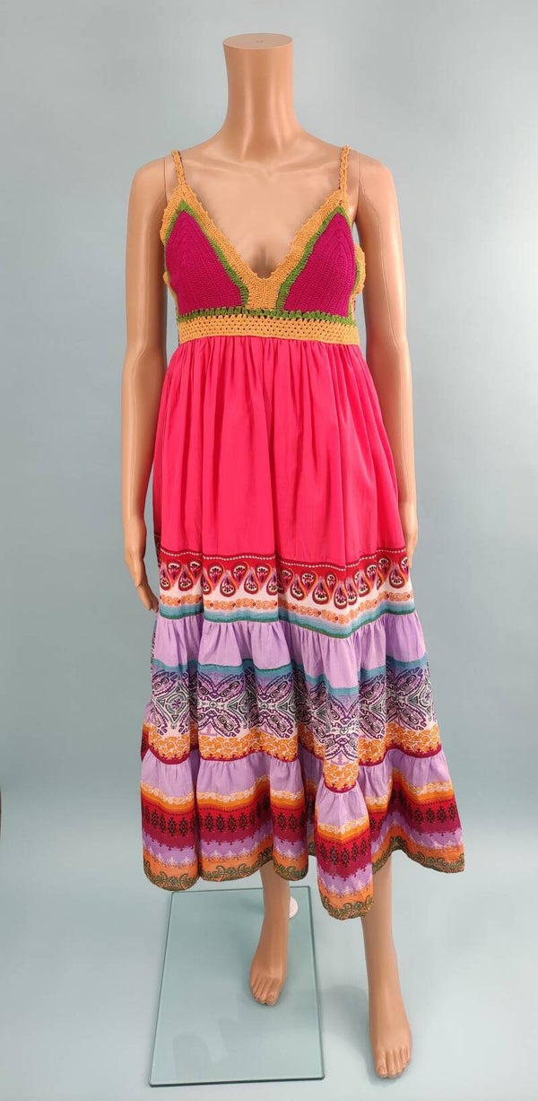 Style: Maxi, ärmellos, Häkel-Muster im Brustbereich, Streifen-Muster, seitlicher Reißverschluss