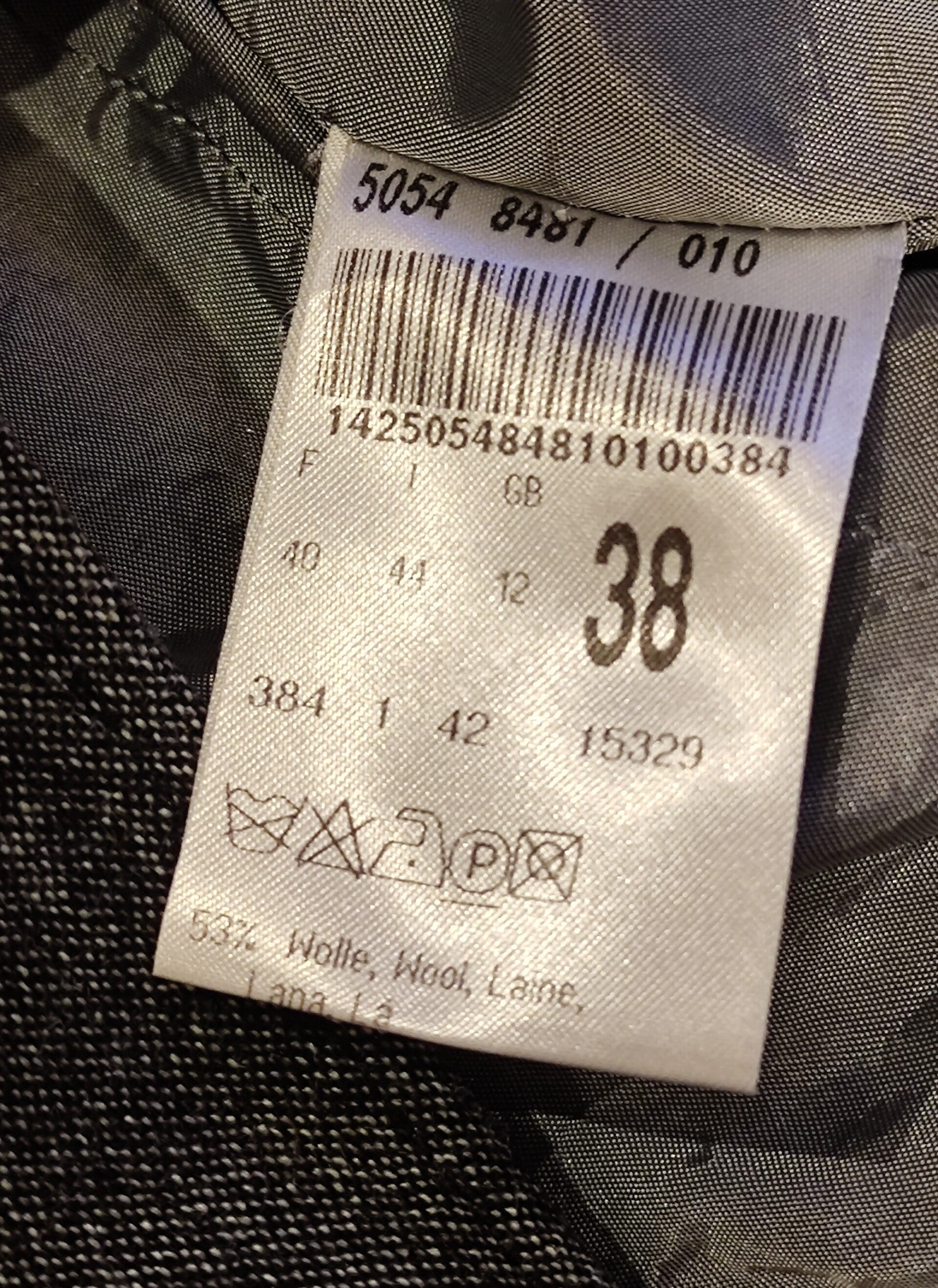 Material: 53% Wolle, 29% Viskose, 16% Polyamid, 2% Elasthan, Futter 56% Acetat, 44% Viskose