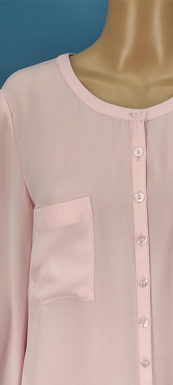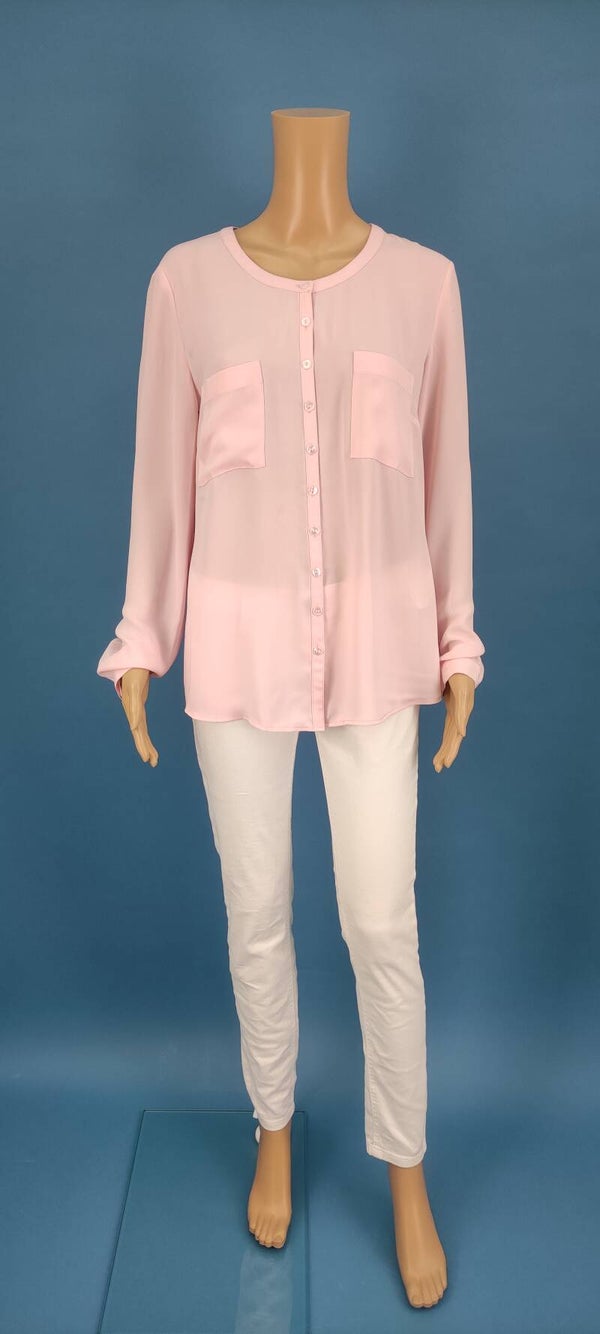 Style: langarm, 2 Brusttaschen, leicht durchscheinender Stoff