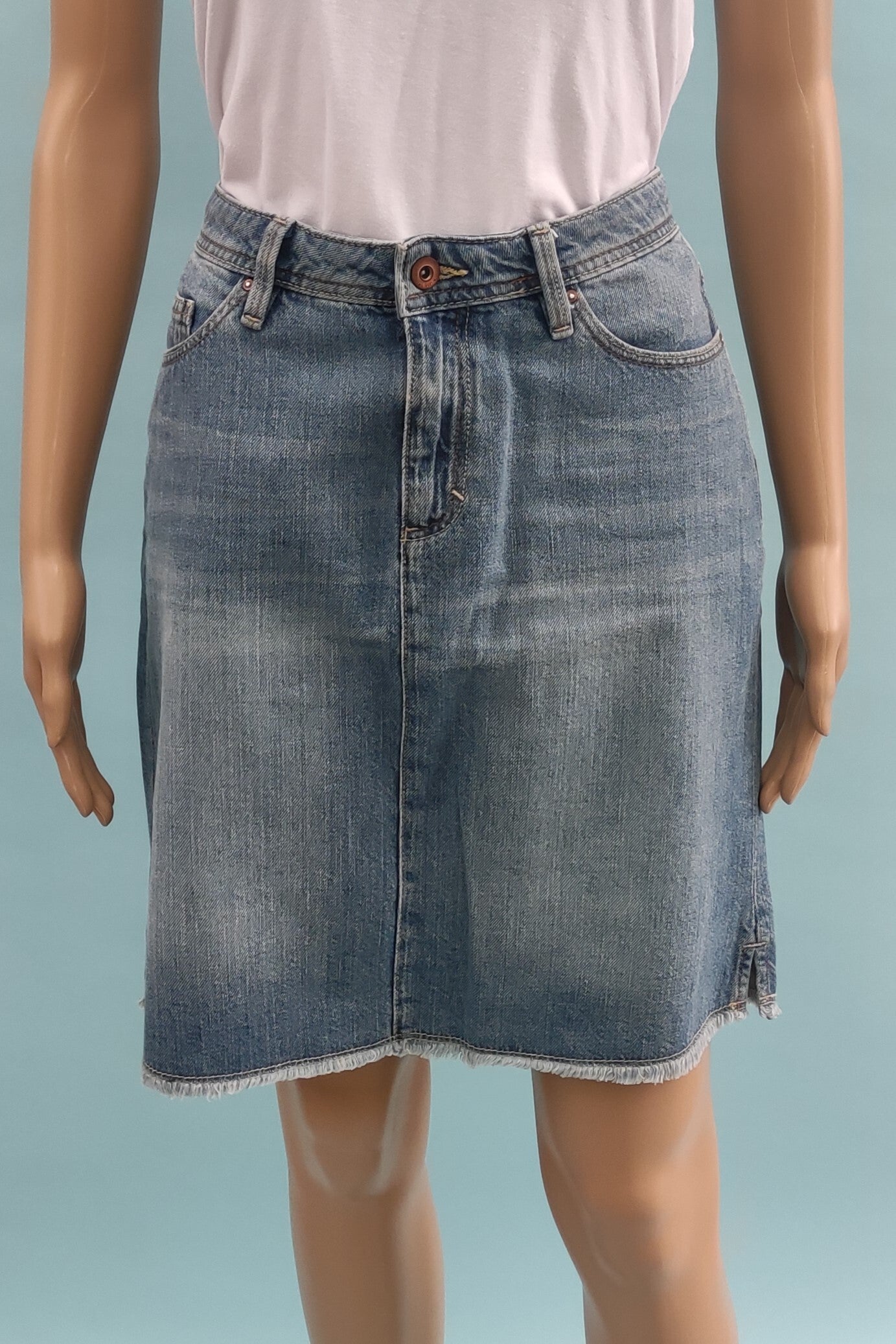 Style: 2 seitlische Taschen, 1 Tasche hinten, Reißverschluss und 1 Knopf vorne, fransiger Saum