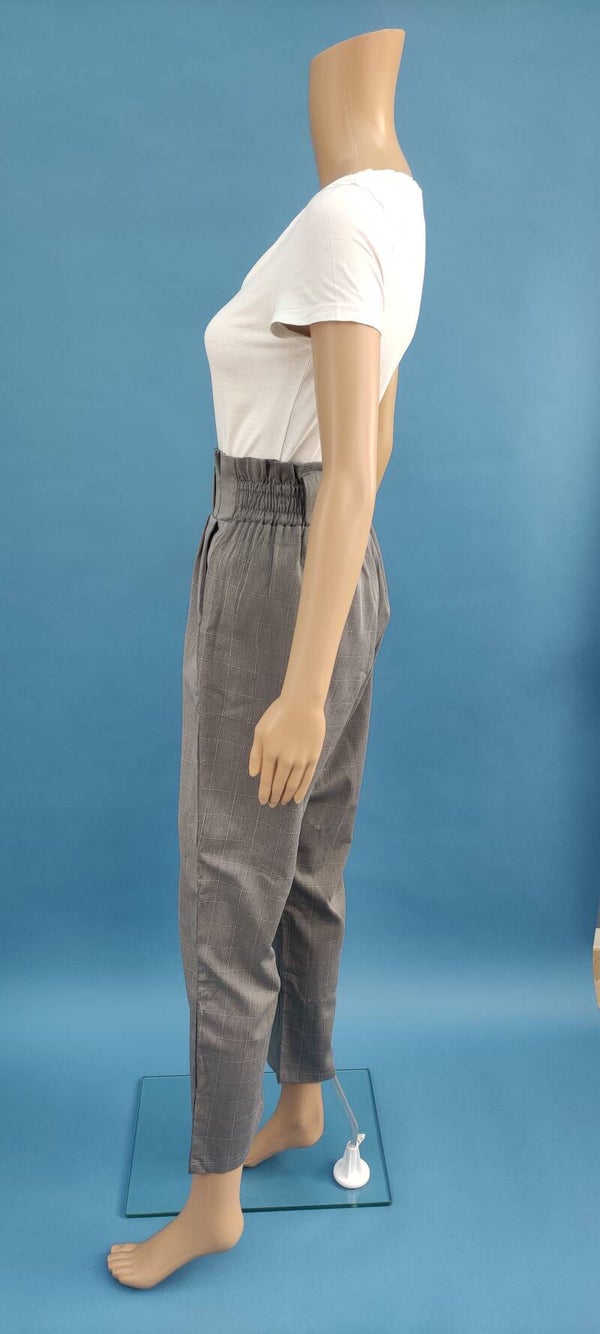 Style: angenehmes Bein, haigh waist, Faltenmuster am Bund, 2 seitliche Taschen, Karo-Muster
