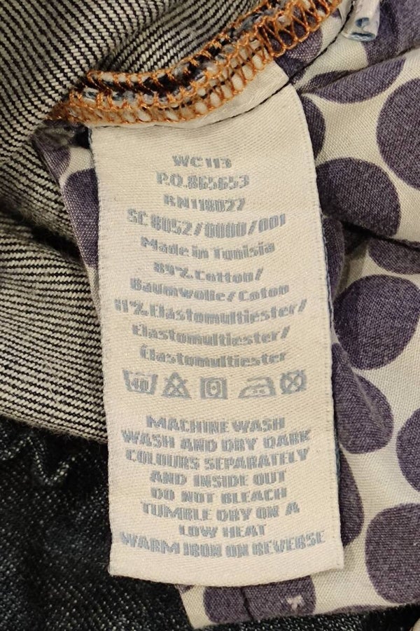 Style: gerades Bein, Reißverschluss und 2 Knöpfe vorne, 2 Seitentaschen, 2 Taschen hinten, umgeschwungener Beinsaum in Vintageoptik (leicht angerauter Stoff)