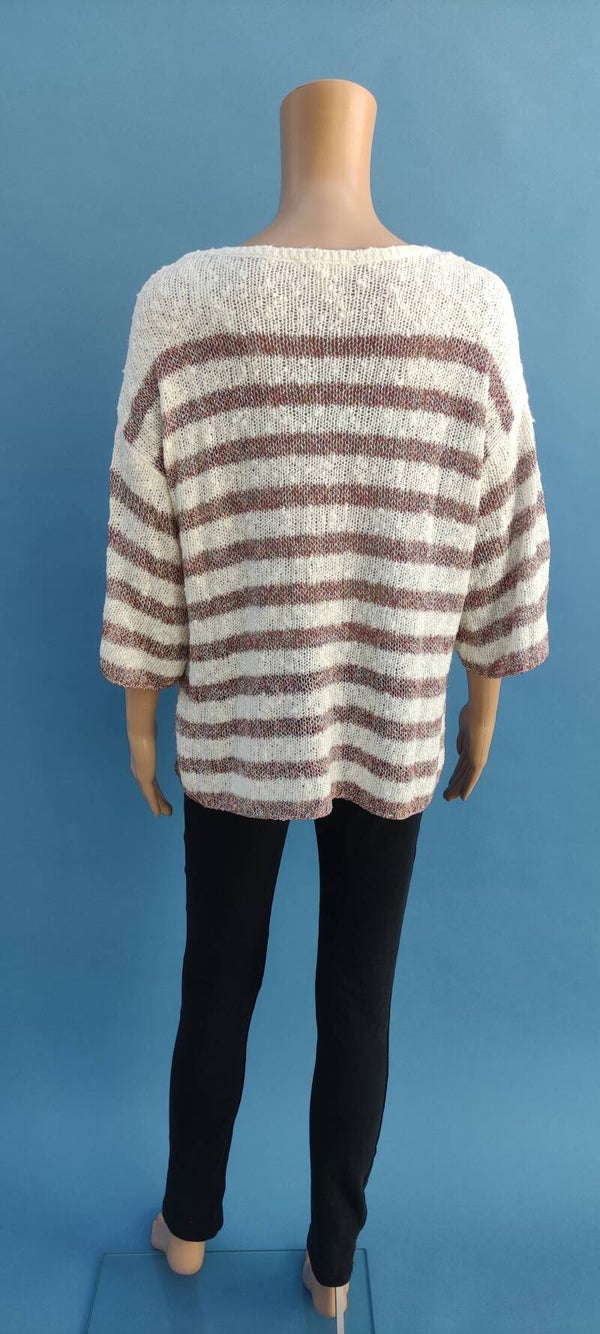 Style: 3/4 Arm, Streifen-Muster, grobes Strickmuster