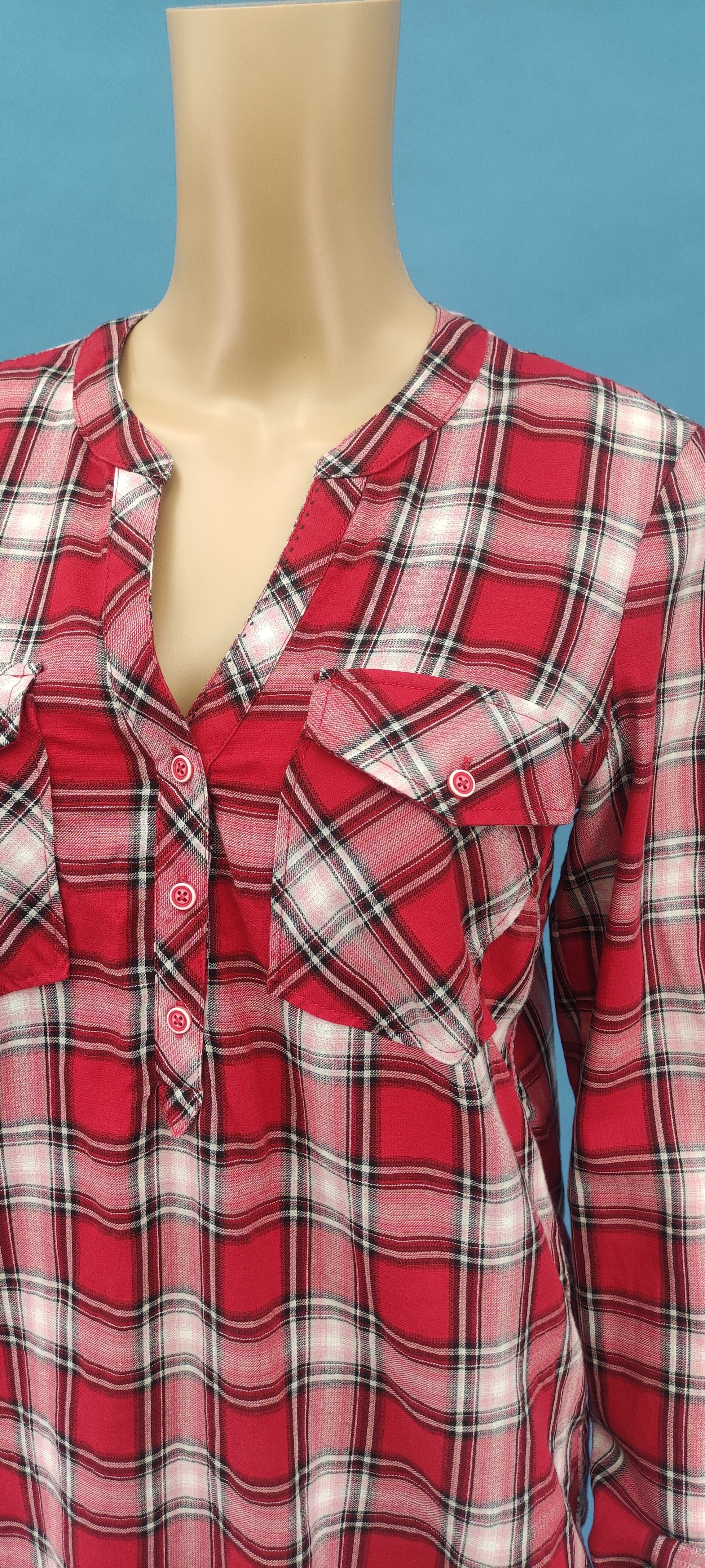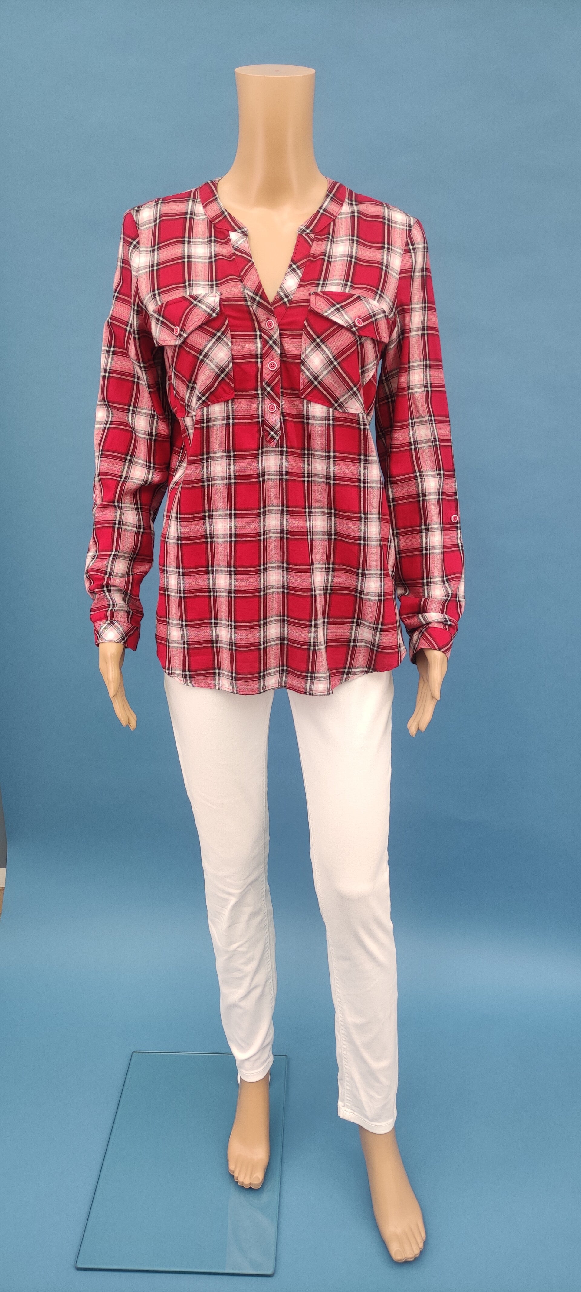 Esprit Bluse langarm rot/weiß kariert Gr. S (36)