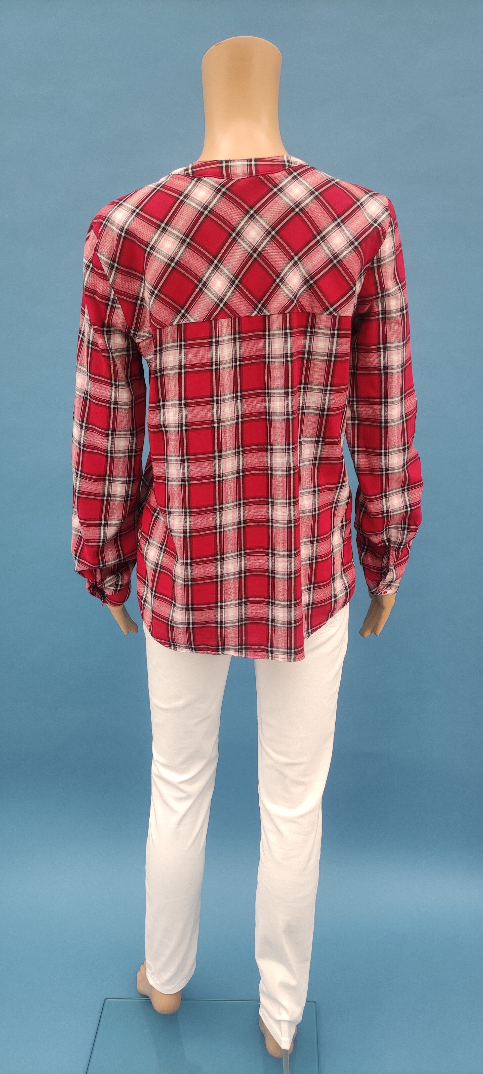 Style: V-Ausschnitt, Knopfleiste vorne, Knopf am Arm zum hochkrempeln, kariertes Muster