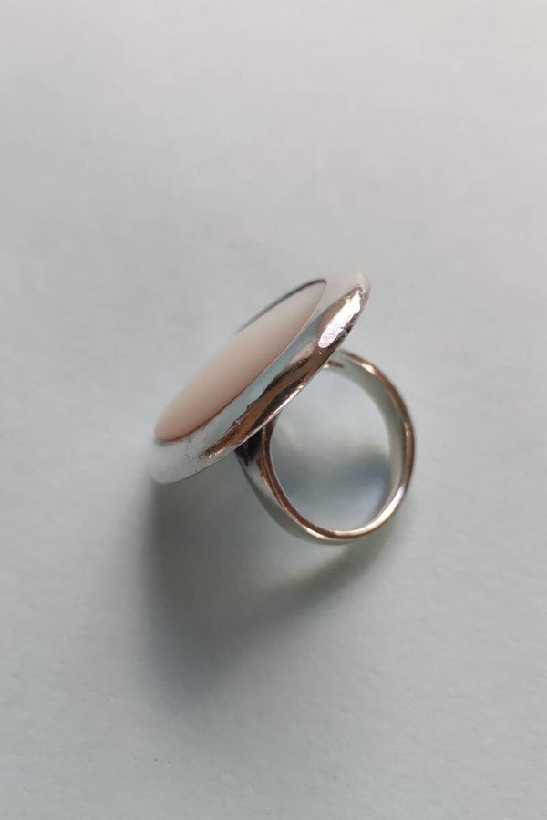 Ring runder Perlmuttstein weiß 925 Silber Gr. 51
