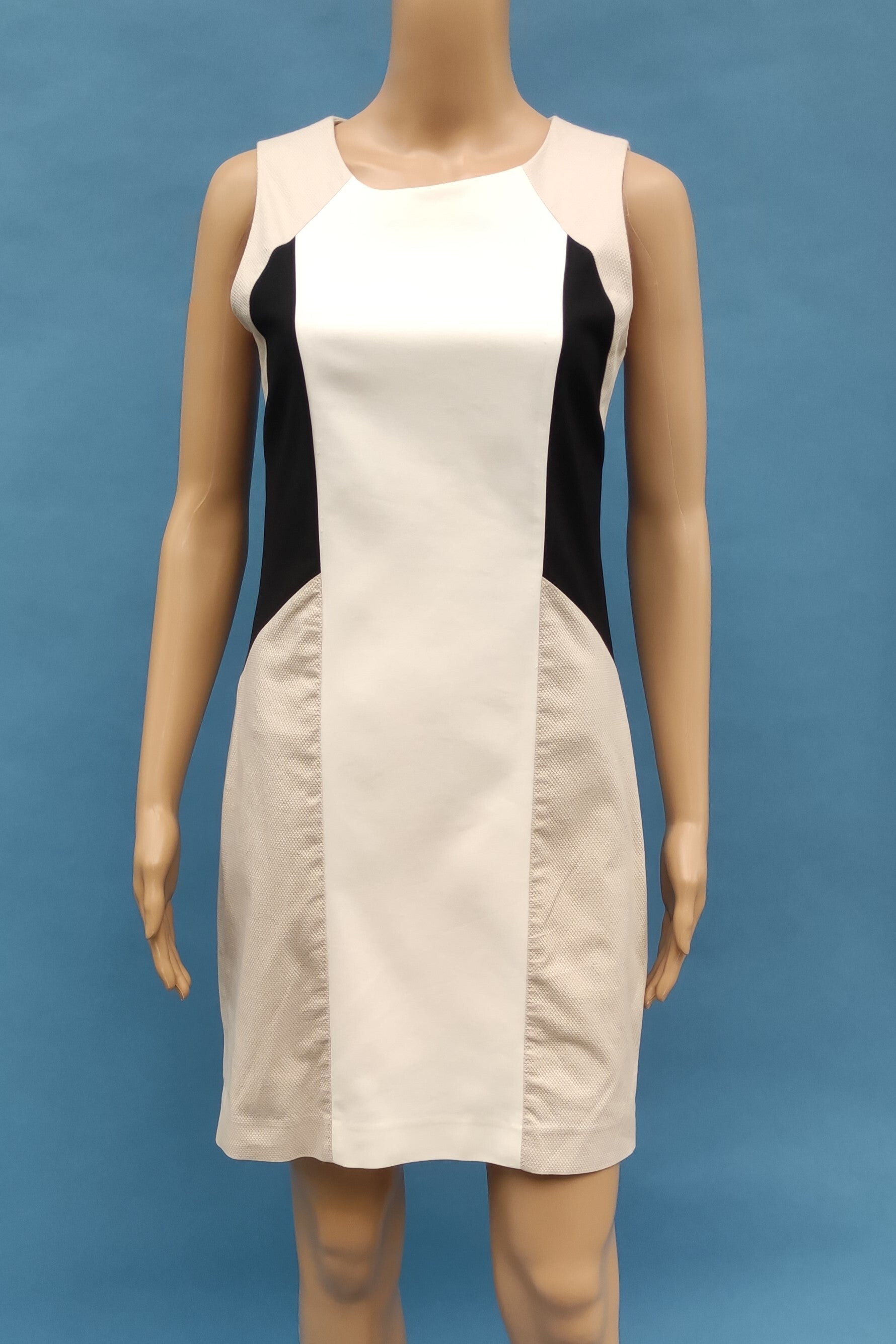 DKNY Etuikleid ärmellos beige/schwarzweiß Gr. S (36)