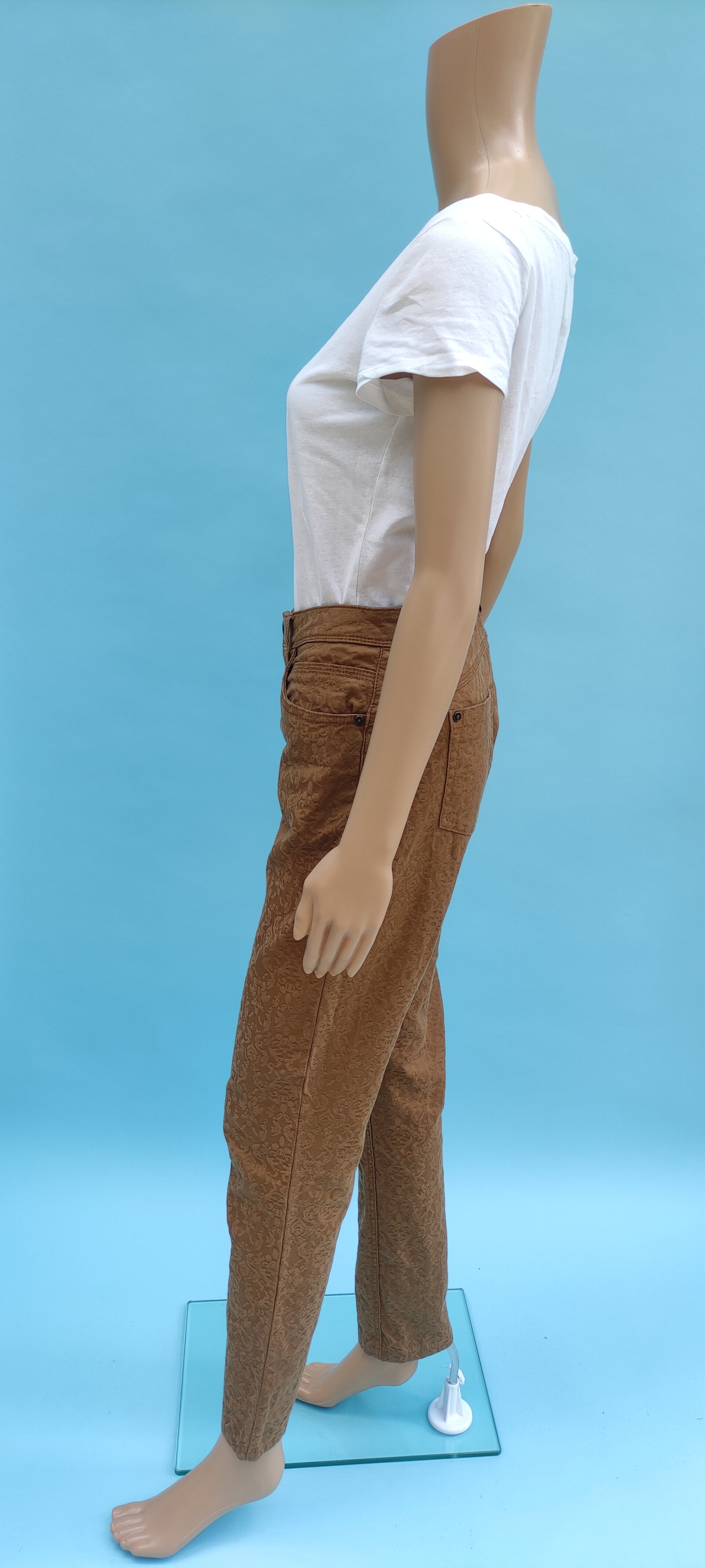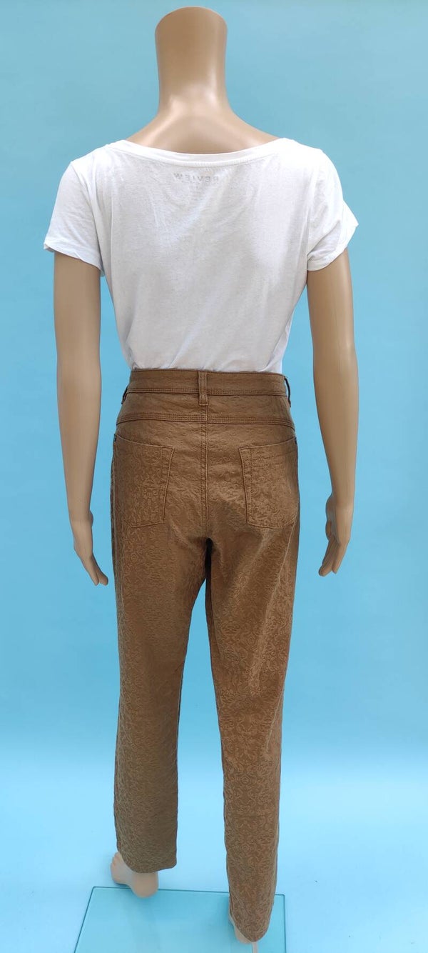 Style: slim, Reißverschluss und 1 Knopf vorne, 2 Taschen vorne, 2 Potaschen, mit Struktur-Muster