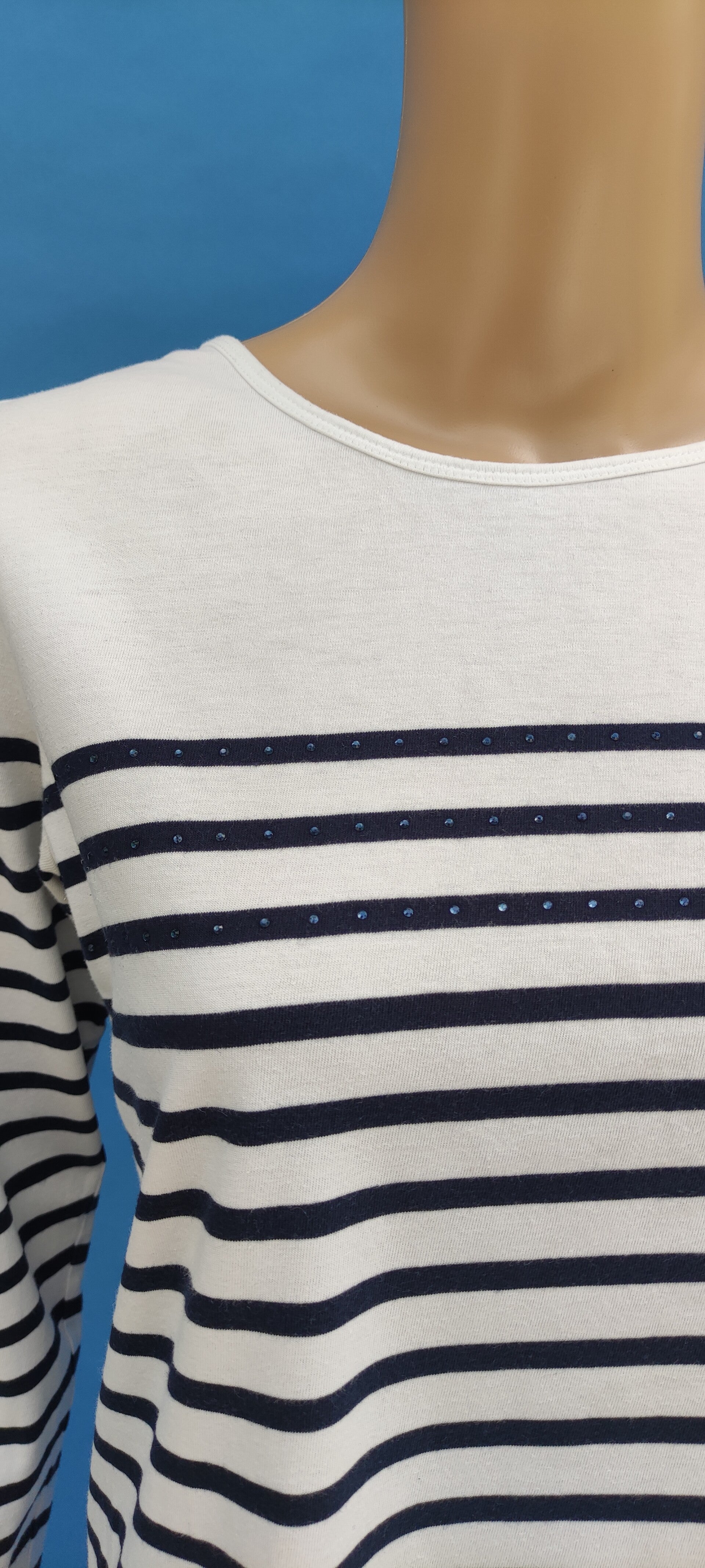 Brax Langarmshirt weiß/blau gestreift Gr. XL (42)