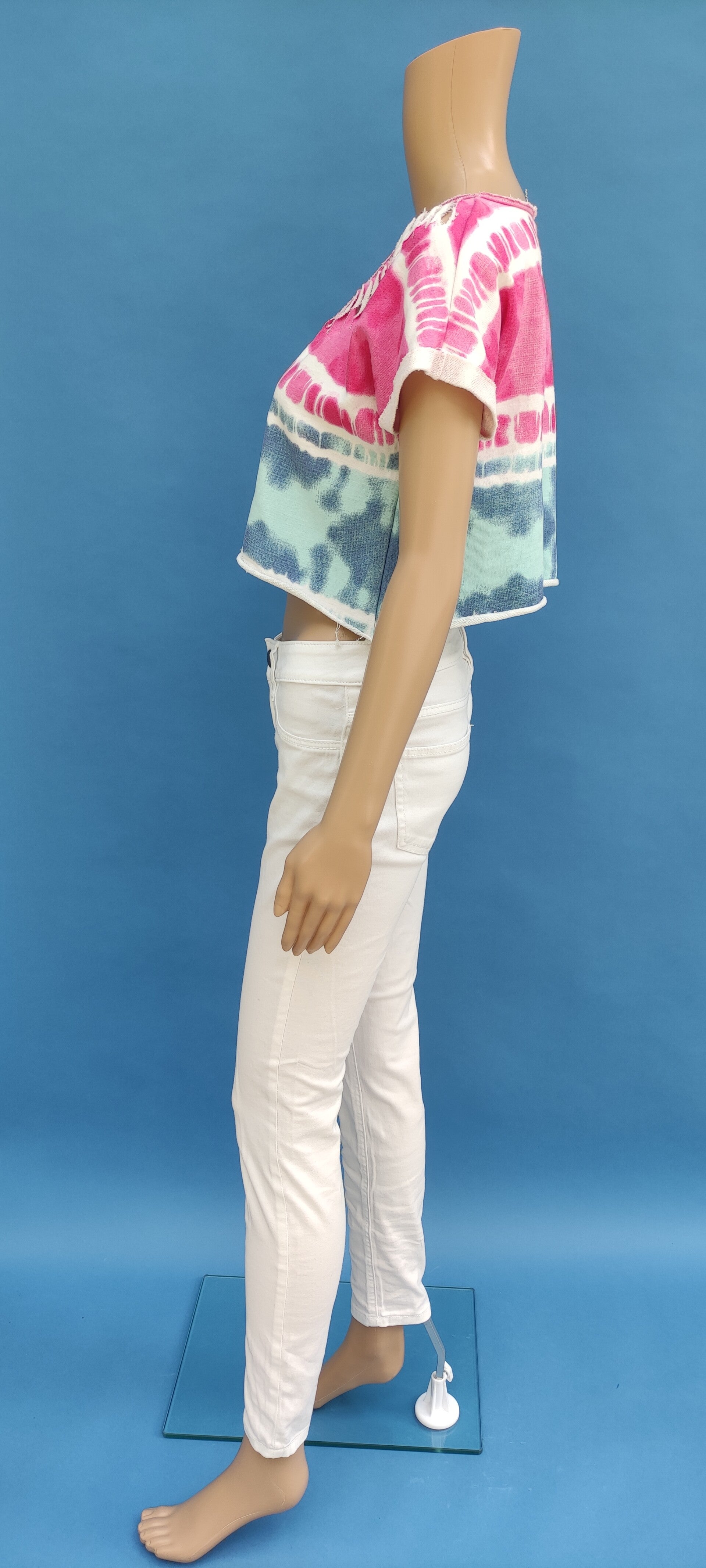 fuga bauchfreies Shirt kurzarm pink/blau Gr. S (36)