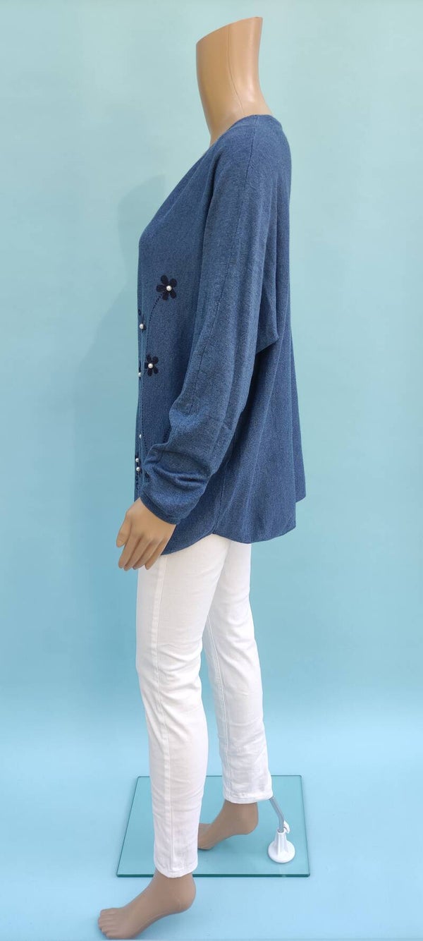 Style: Rundhals, Blumen mit Perlen-Muster vorne