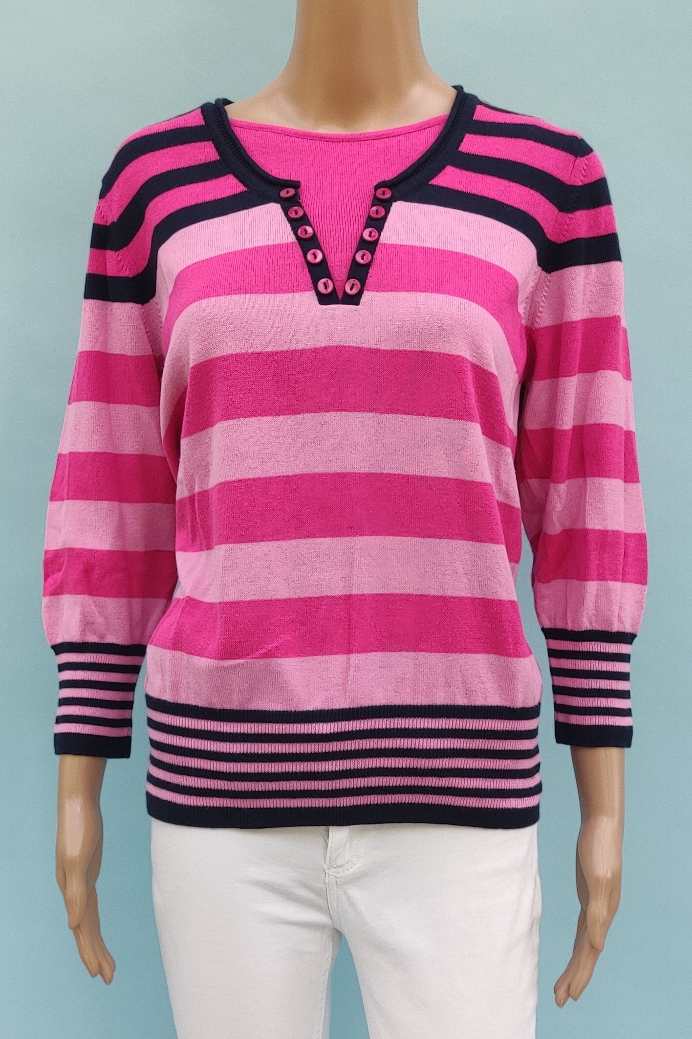 Rabe 3/4 Arm Pullover pink/dunkelblau Gr. XL (42)