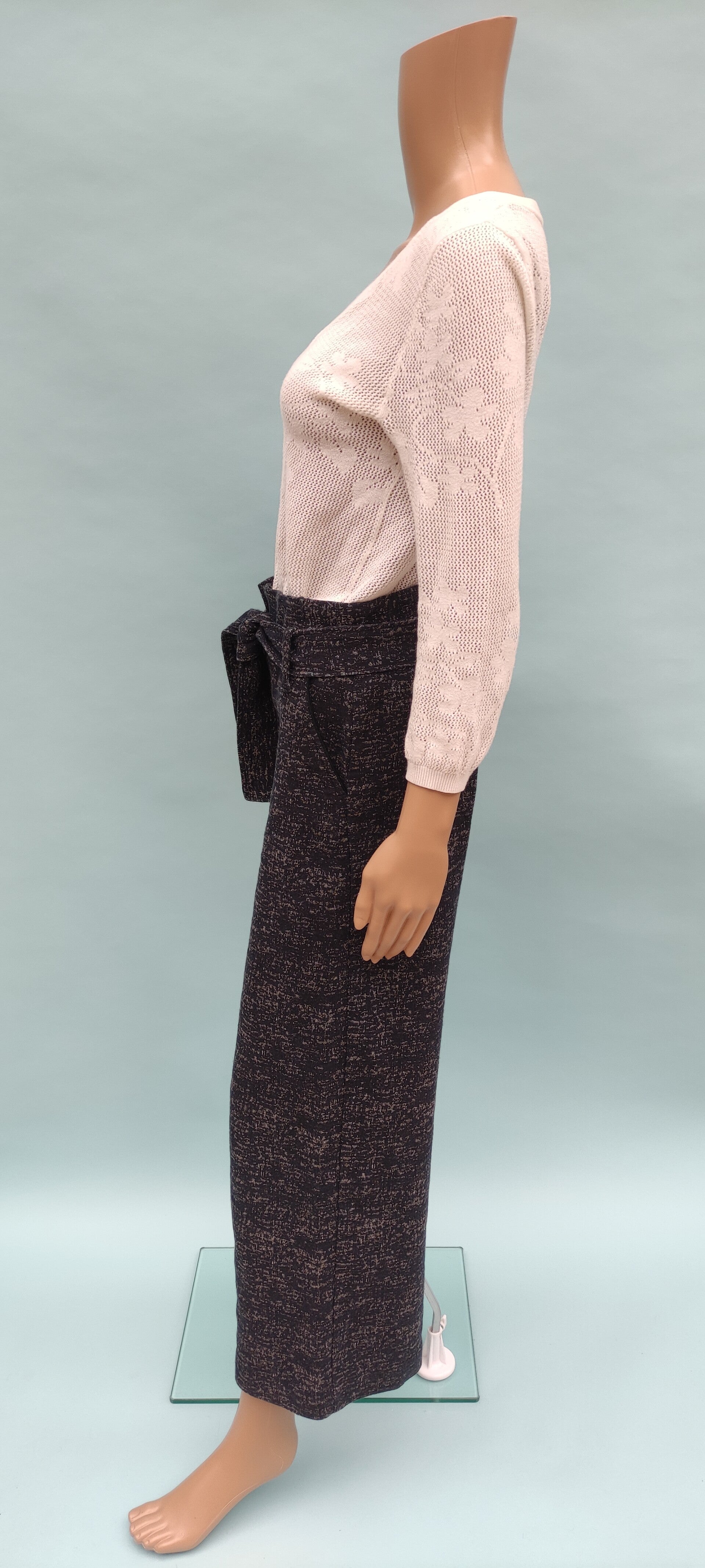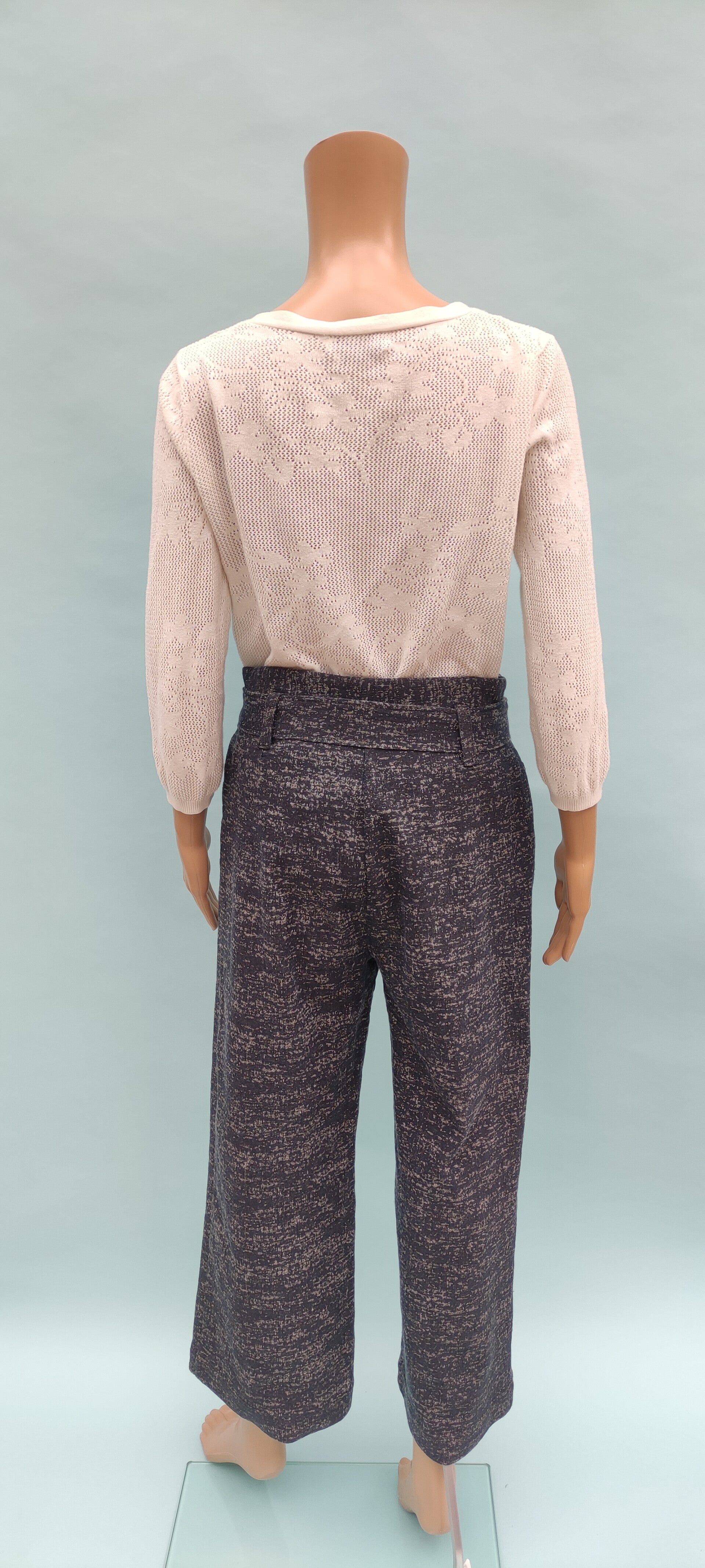 Style: weites gerades Bein, 2 Seitentaschen, Gürtellaschen mit Gürtelband, 2 Ösen und Reißverschluss vorne, Muster