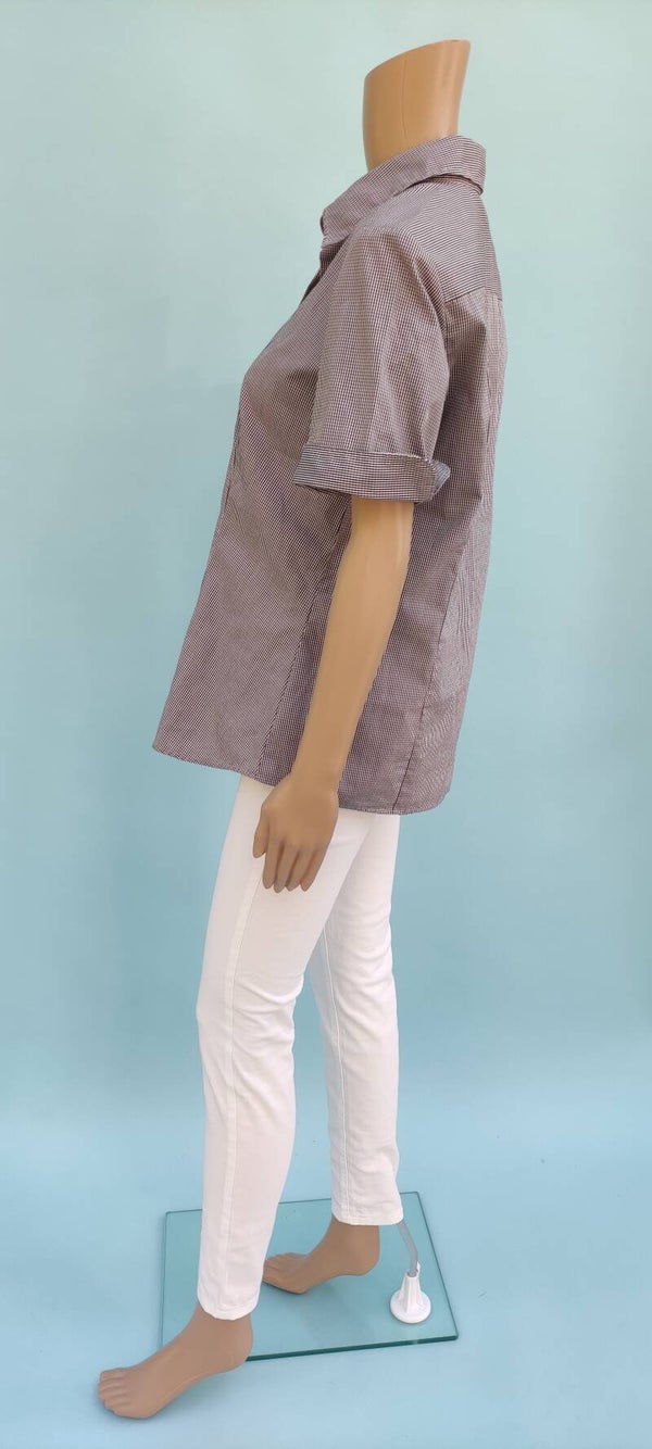 Seidensticker Bluse kurzarm weiß/braun kariert Gr. XL (42)
