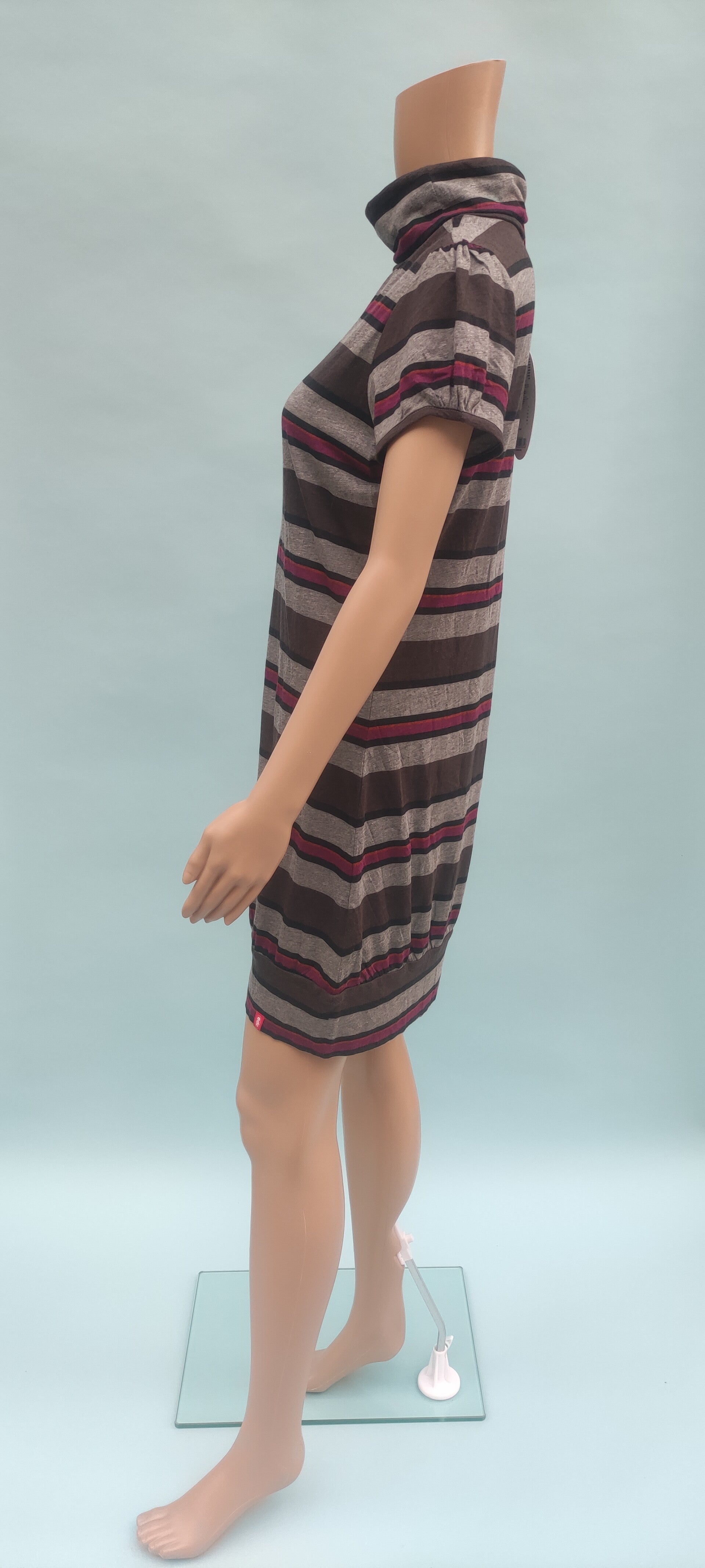Esprit Kleid kurzarm mit Rollkragen grau/braun gestreift Gr. XL (42) NEU