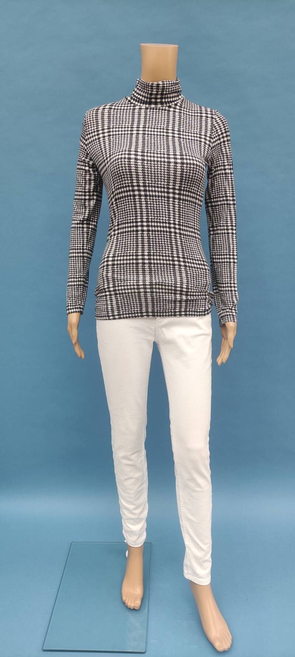 Northland Langarmshirt mit Rollkragen Hahnentrittmuster schwarz/weiß Gr. S (36)