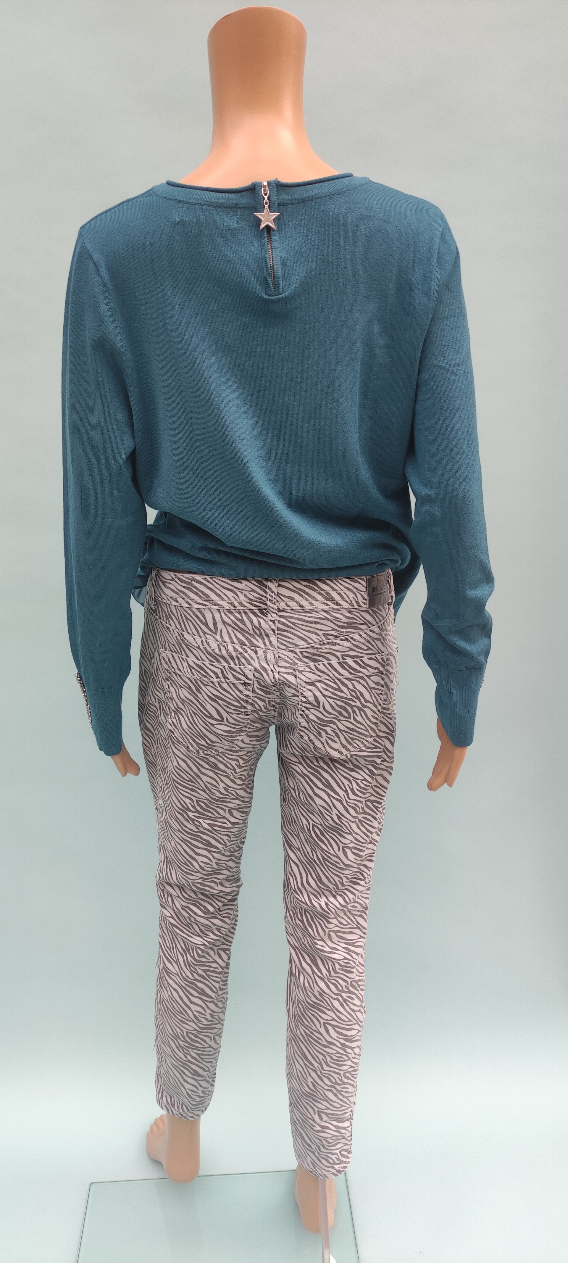 Street One Crissi slim fit Jeanshose grau/schwarz Zebrastreifen Muster Gr. S (36)