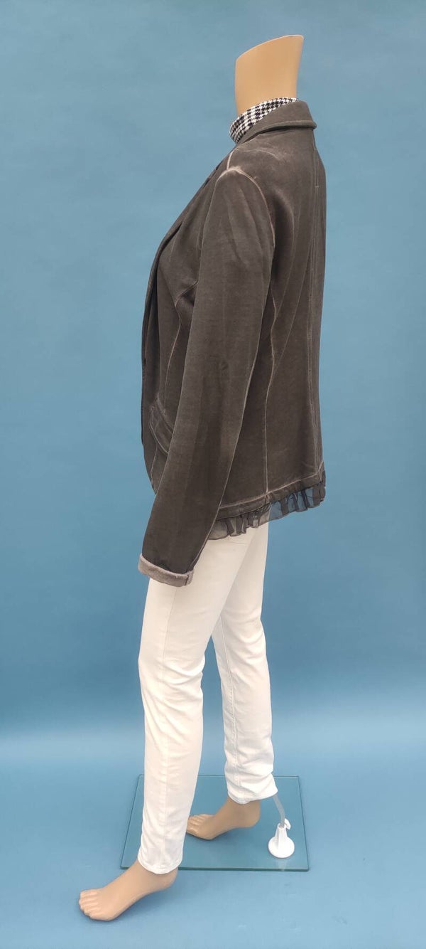 Style: 1 Knopf vorne, Blusenstoff am Saum, 2 Vordertaschen