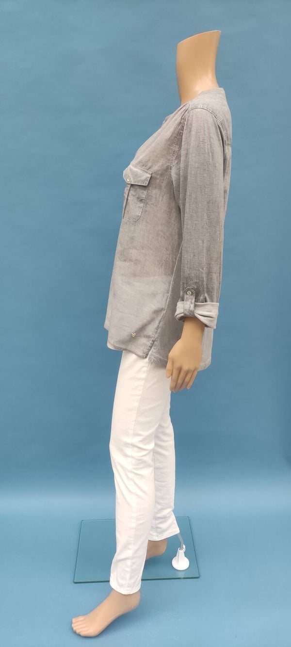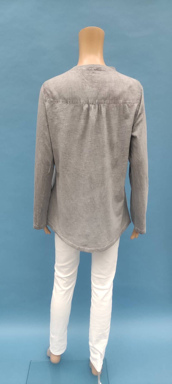 Style: V-Ausschnitt, Knopfleiste vorne, 2 Brusttaschen mit Knopf, leicht durchlässiger Stoff vorne und am Rücken, Arm mit Band und Knopf hochkrempelbar