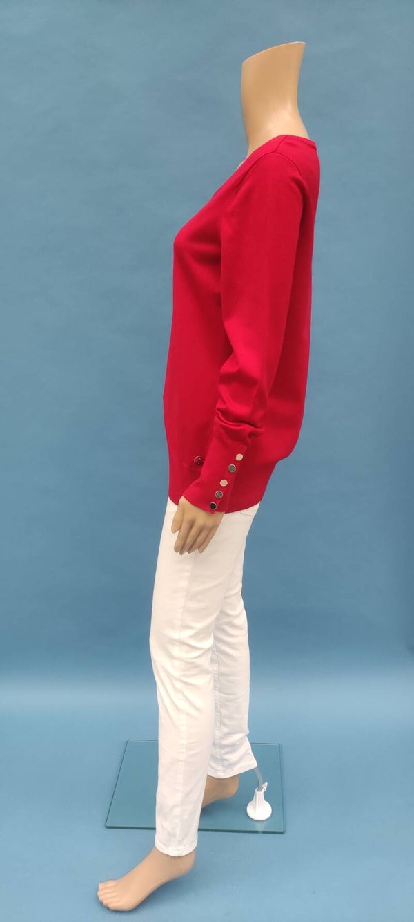 Style: Rundhals, Feinstrick, Dekoknöpfe am Armsaum