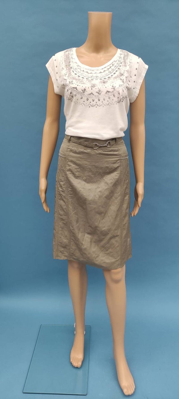 Style: Bleistiftrock, Deko-Gürtel mit Metallschnalle, einseitiger Deko-Reißverschluss vorne, Reißverschluss hinten, Doppelstoff