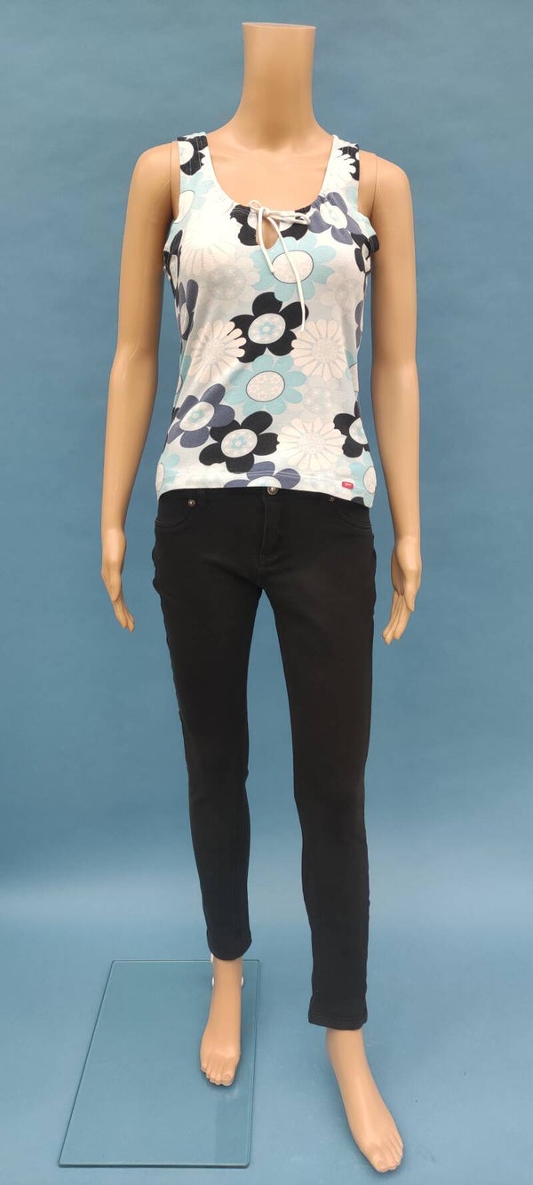 Esprit Top blau/weiß mit Blumen Gr. S (36)