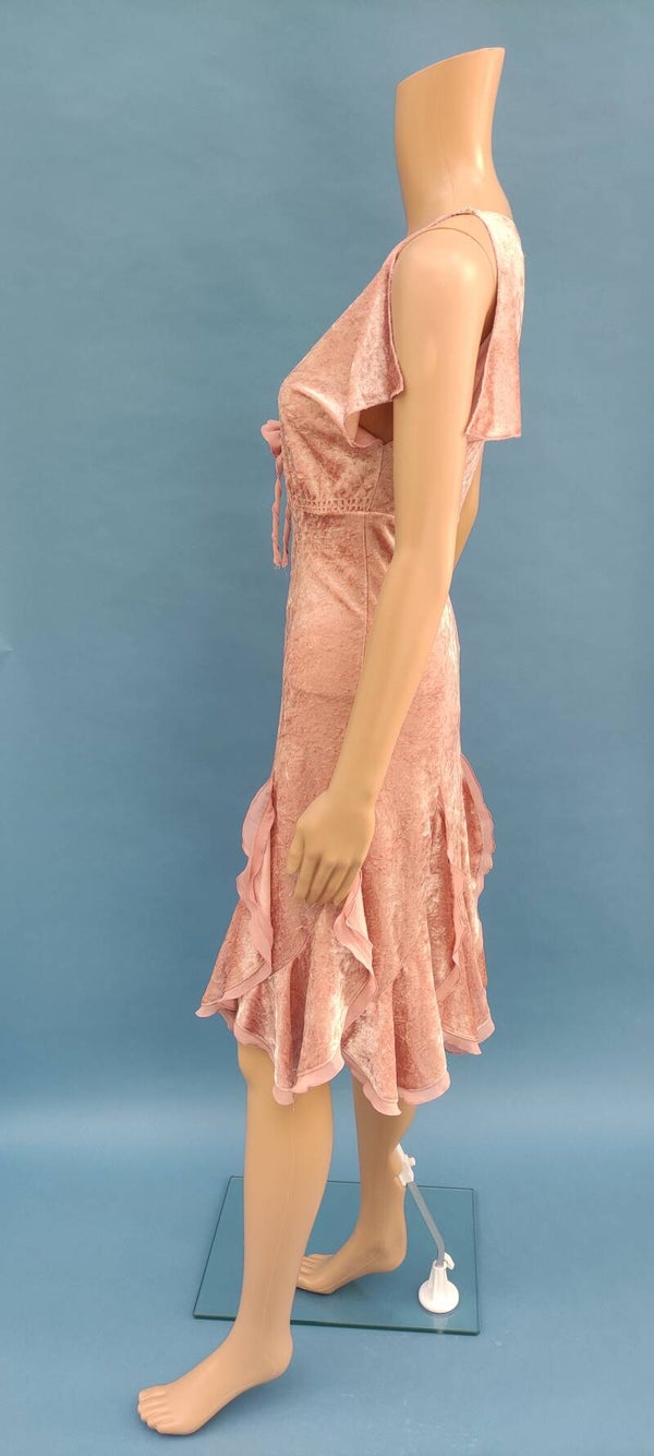 Style: V-Ausschnitt, samtiger Stoff, Strasssteine an den Trägern, Blue mit Transparente rosa Steine am Ausschnitt, Gummisaum unter dem Brustbereich, offener fallender Arm, Fransen am Saumbereich, mit Unterstoff