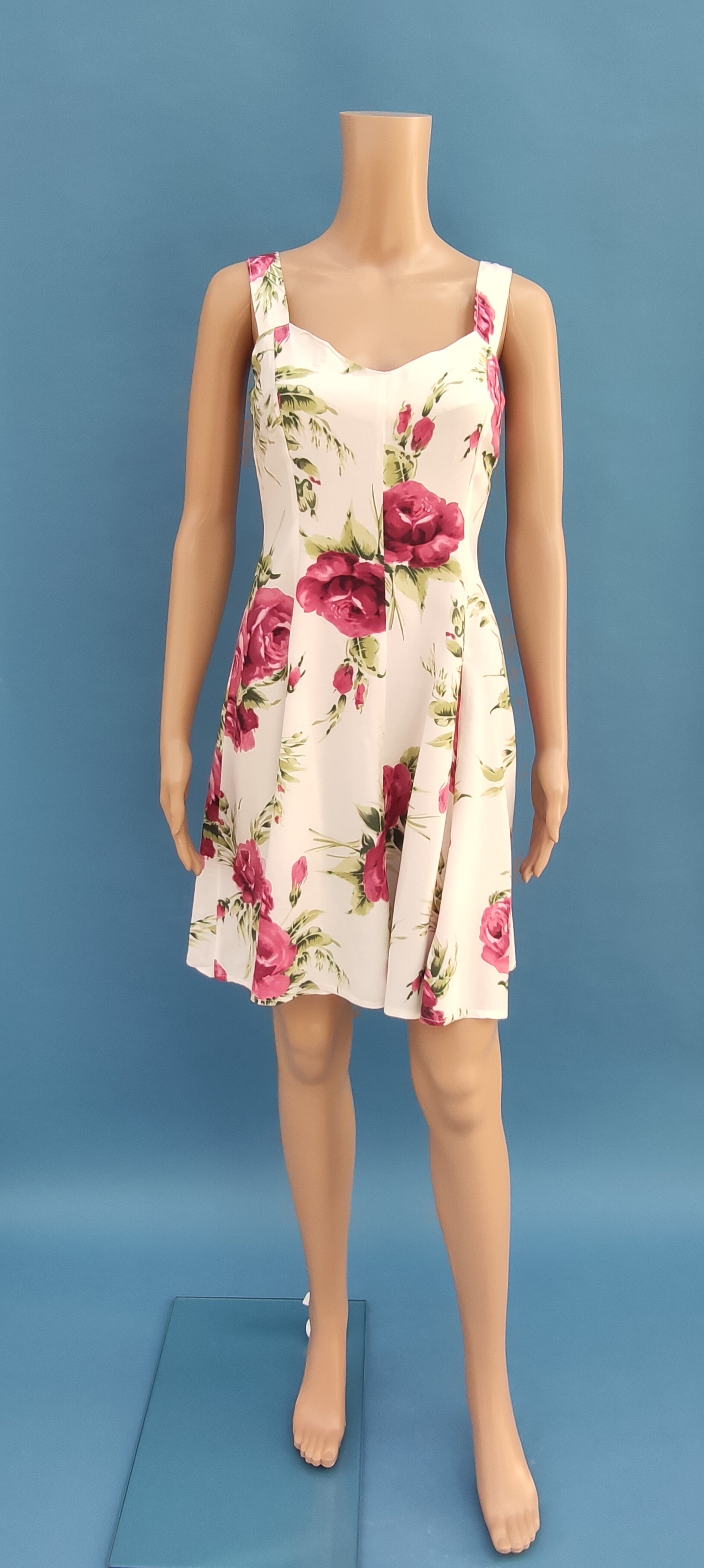 Joachim Bosse Kleid ärmellos A-Linie mit Blumen creme/beere/grün Gr. M (38)