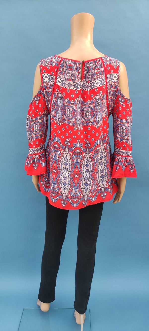 F&F Bluse langarm und schulterfrei rot/blau Gr. XL (42)