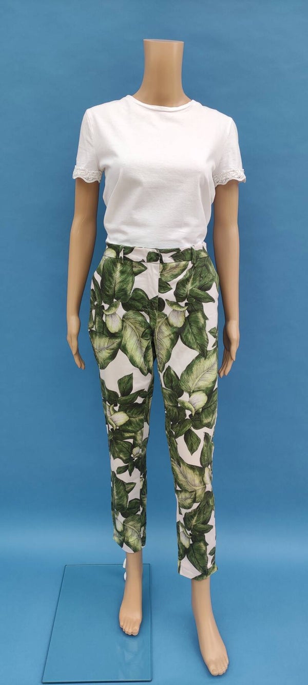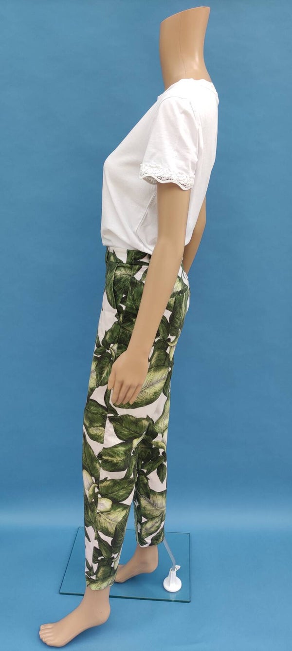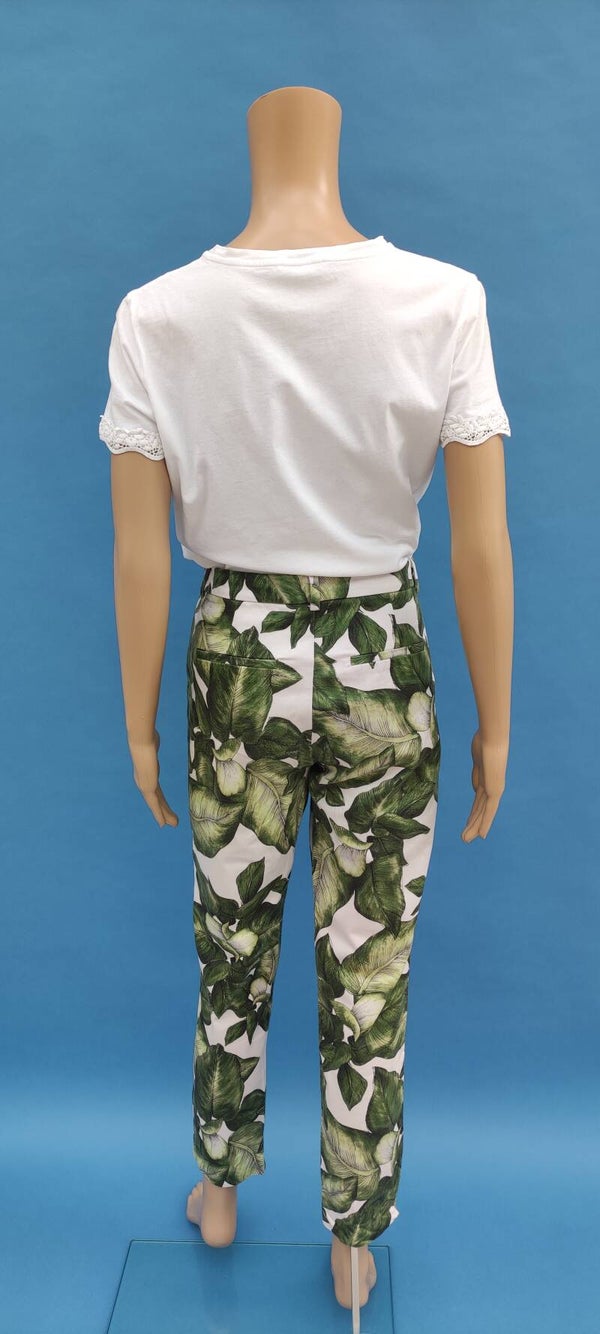 Hallhuber Chinohose weiß/grün mit Blättermuster Gr. M (38)