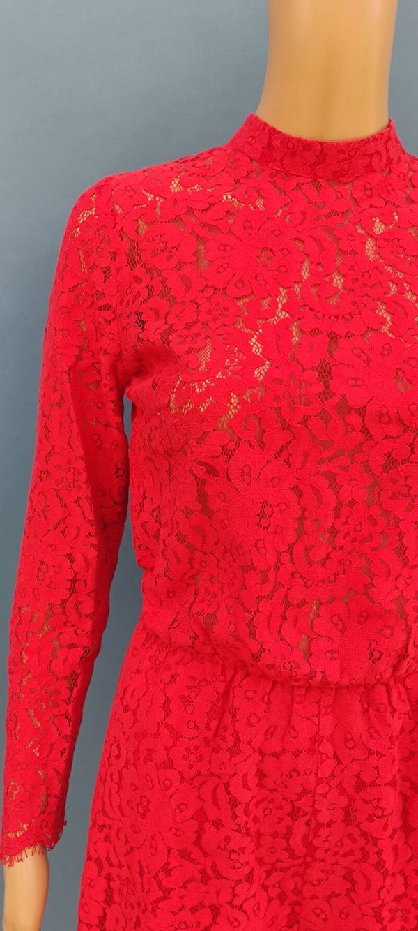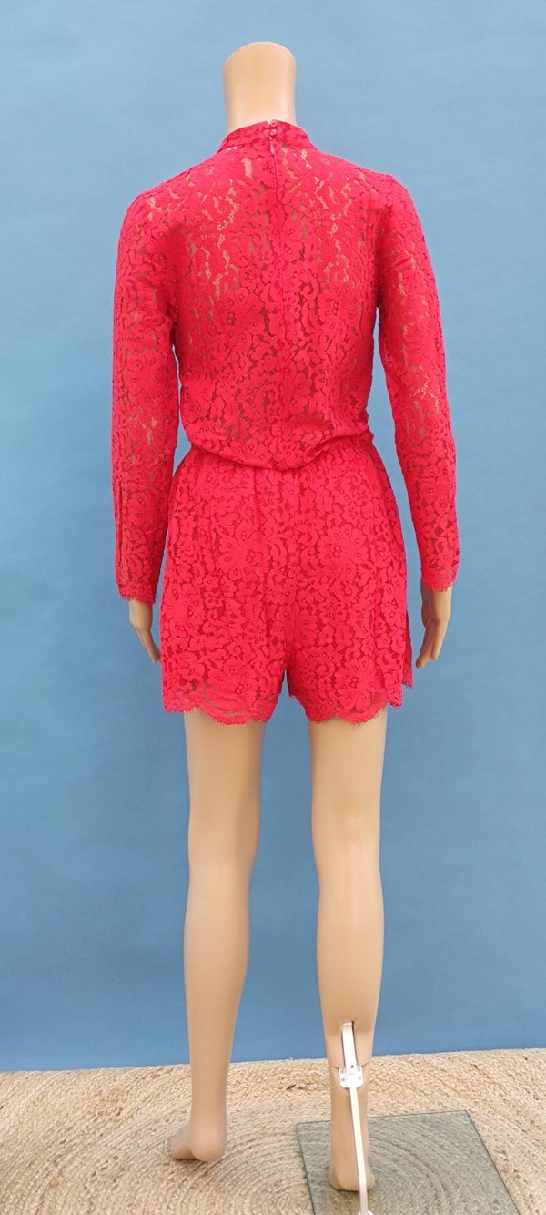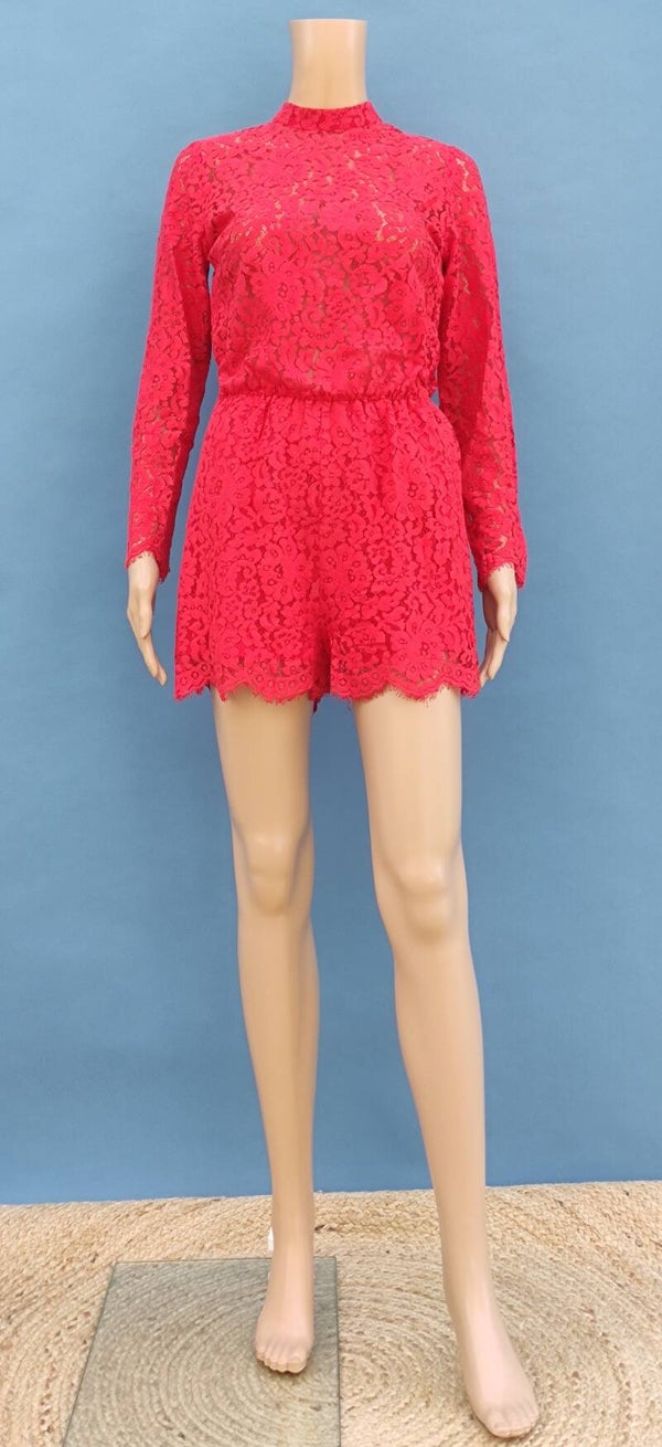 H&M Jumpsuit mit Spitze langarm und kurzes Bein rot Gr. S (36)