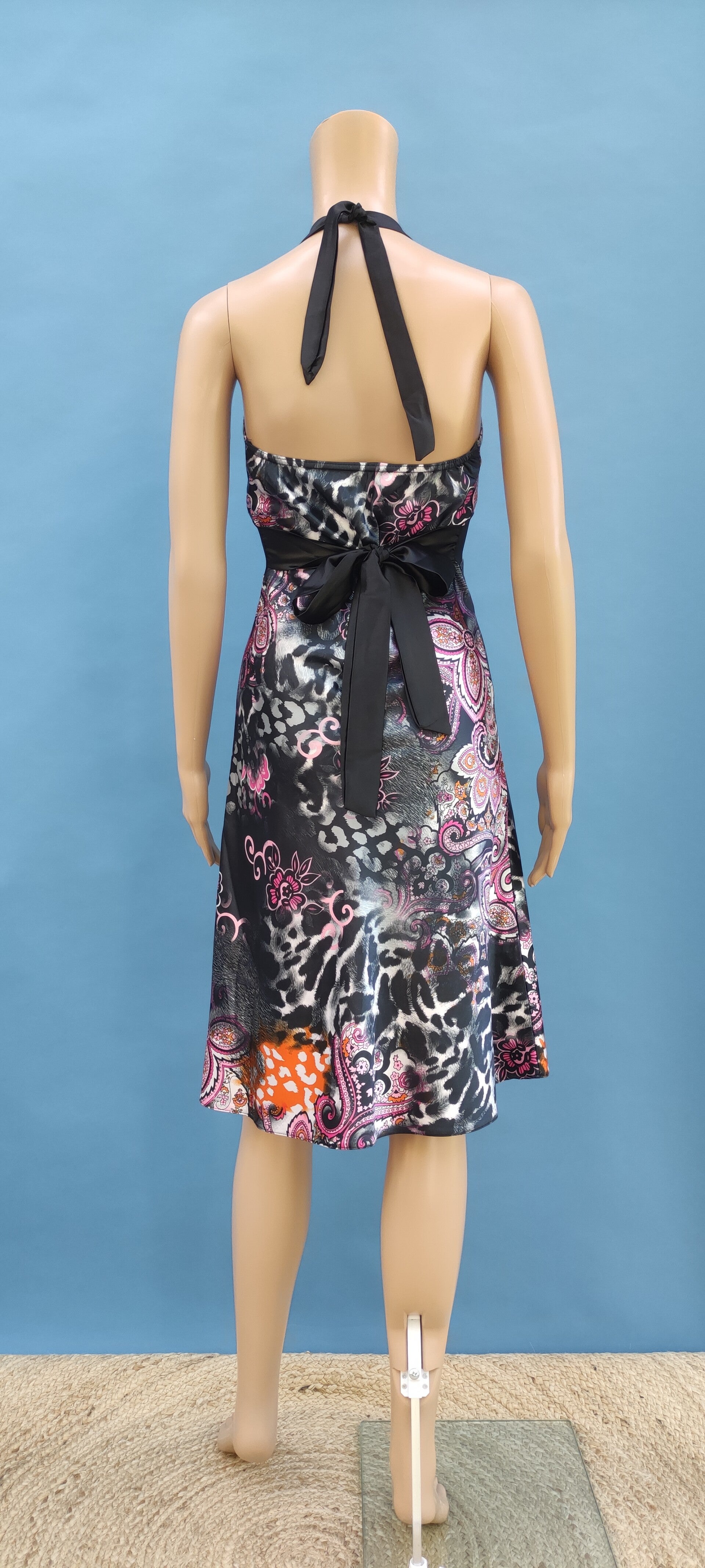 Satin Neckholderkleid bunt Gr. S (36)