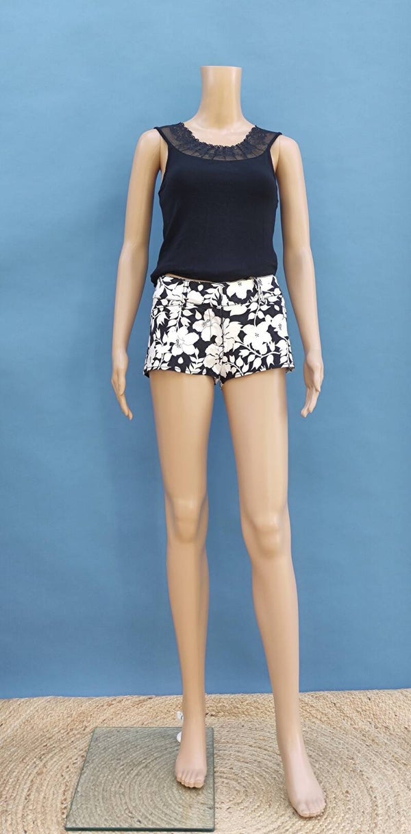 H&M Shorts Blumenmuster schwarz/weiß Gr. S (36)
