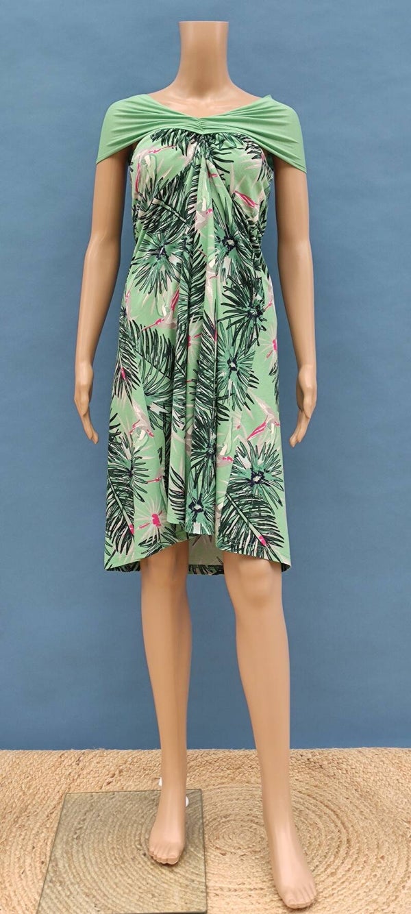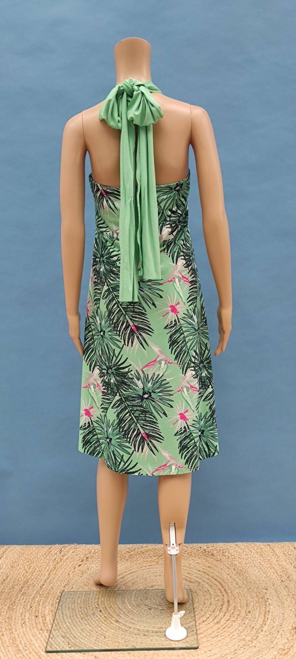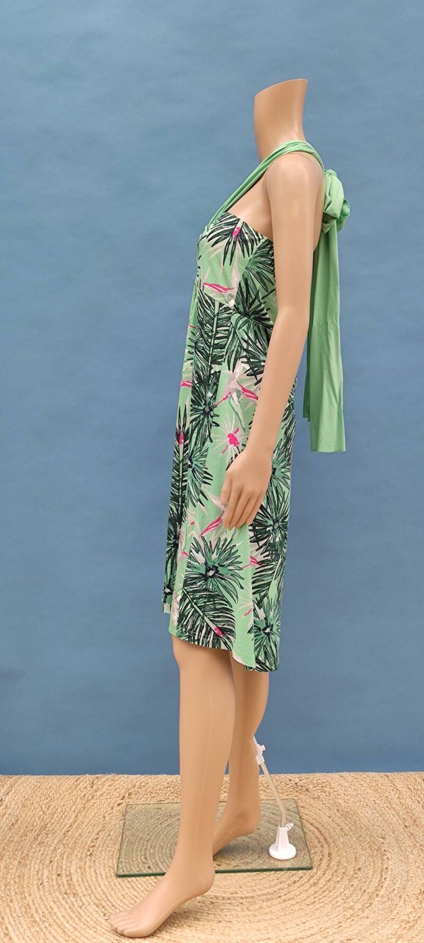 Style: wandlungsfähig in 5 verschiedenen Varianten (4 Kleidervarianten oder als Rock umfunktionierbar), Blättermuster, Gummisaum am Ausschnitt, langes Schleifenband