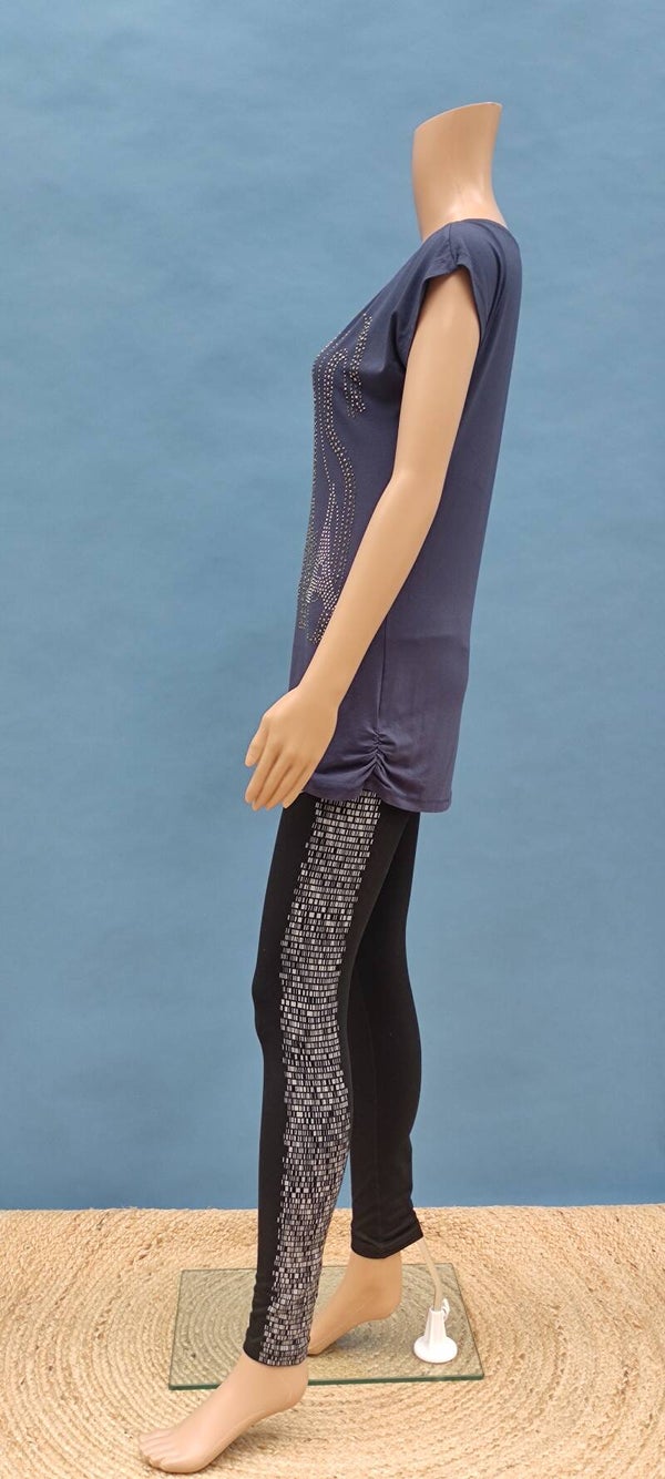 T-Shirt dunkelblau mit Nieten Paris Gr. M (38)