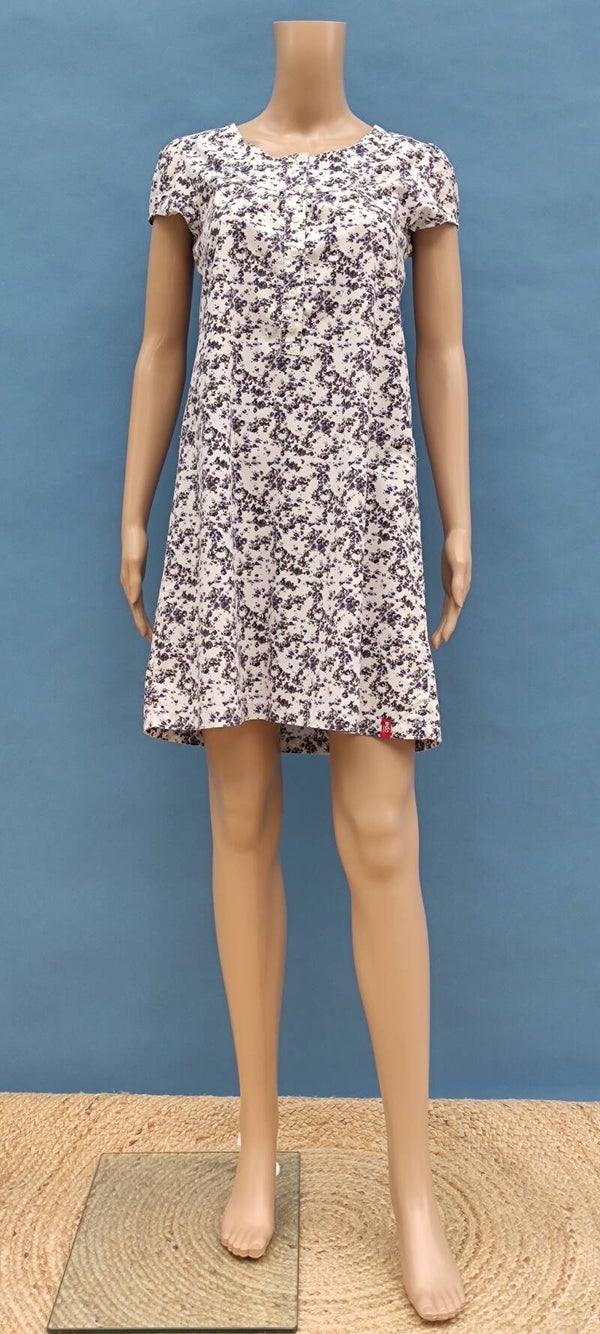 Esprit Blusenkleid kurzarm weiß/lila mit Blümchen Gr. L (40)