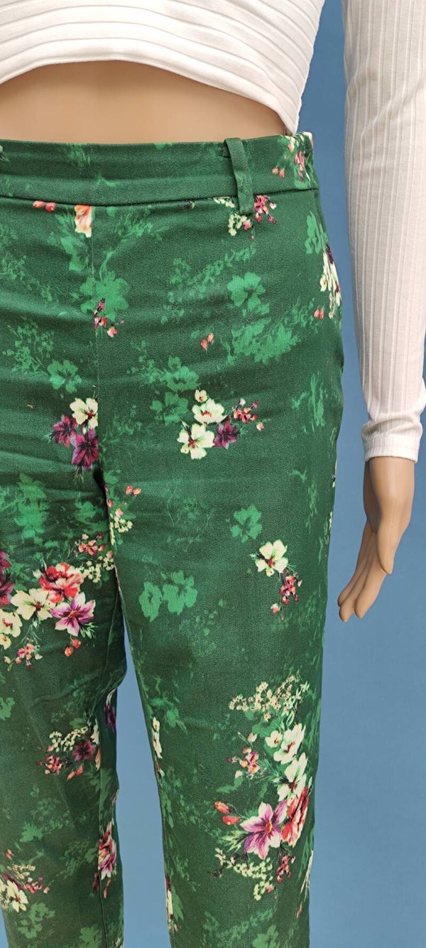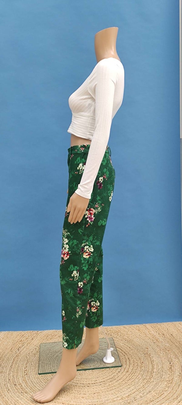 H&M Cropped Stoffhose grün mit Blumen Gr. M (38)