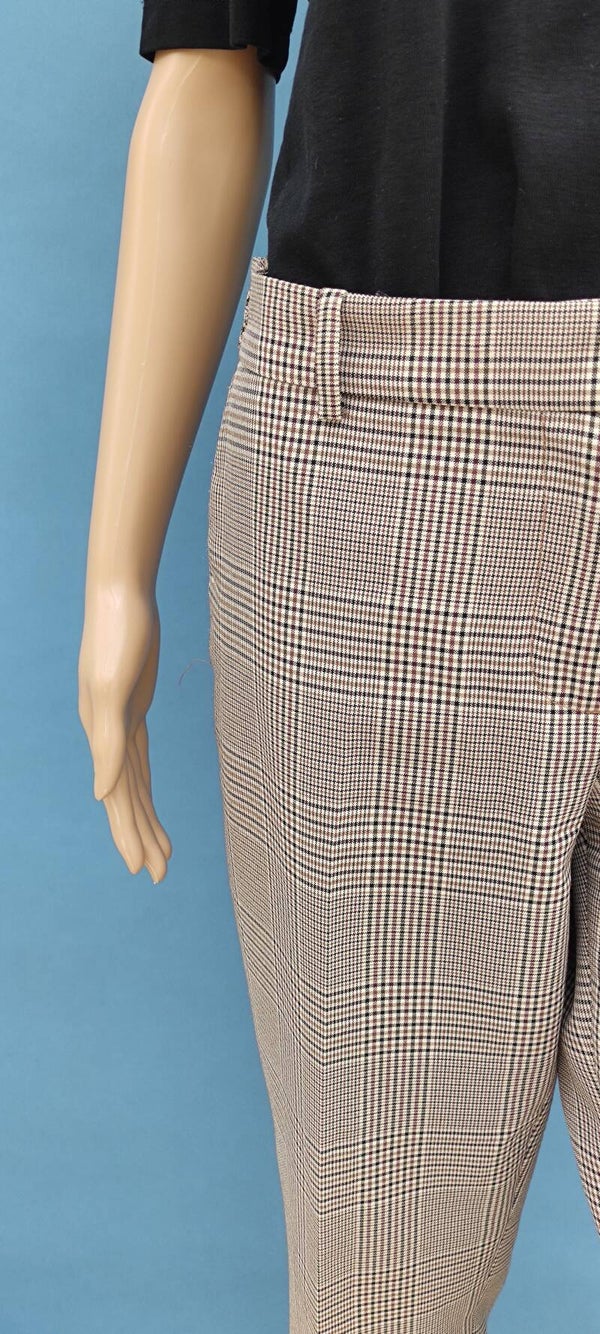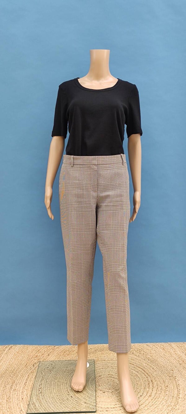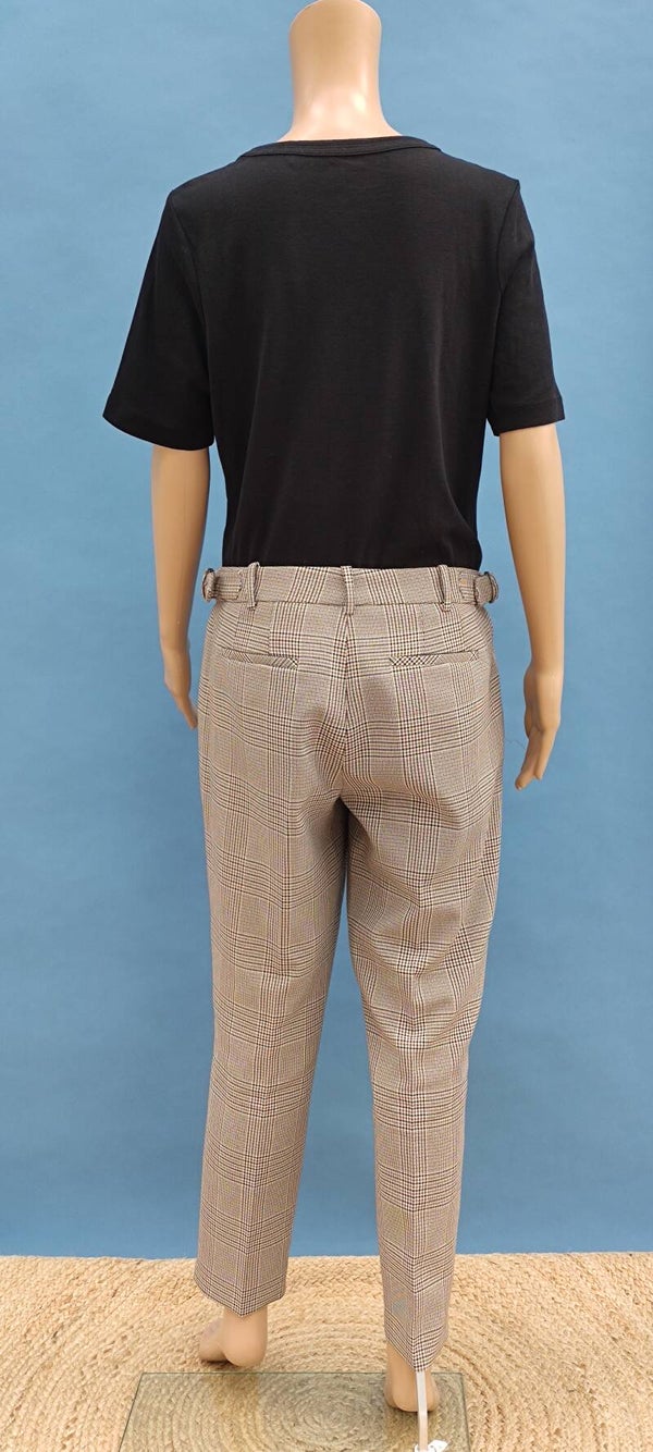 Style: Chino, kariertes Muster, 2 Seitentaschen, Reißverschluss mit 2 Ösen und 1 Knopf vorne, Gürtellaschen mit 2 Metallösen seitlich, 2 Deko-Taschen am Po, Falte in der Mitte des Vorderbeines, kleiner Schlitz am Beinsaum