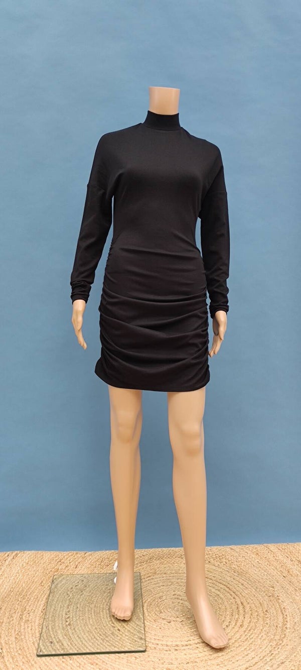 Style: Langarm, kurzer Stehkragen, Reißverschluss am Oberrücken, Raffung mit Gummiband seitlich und am Armsaum