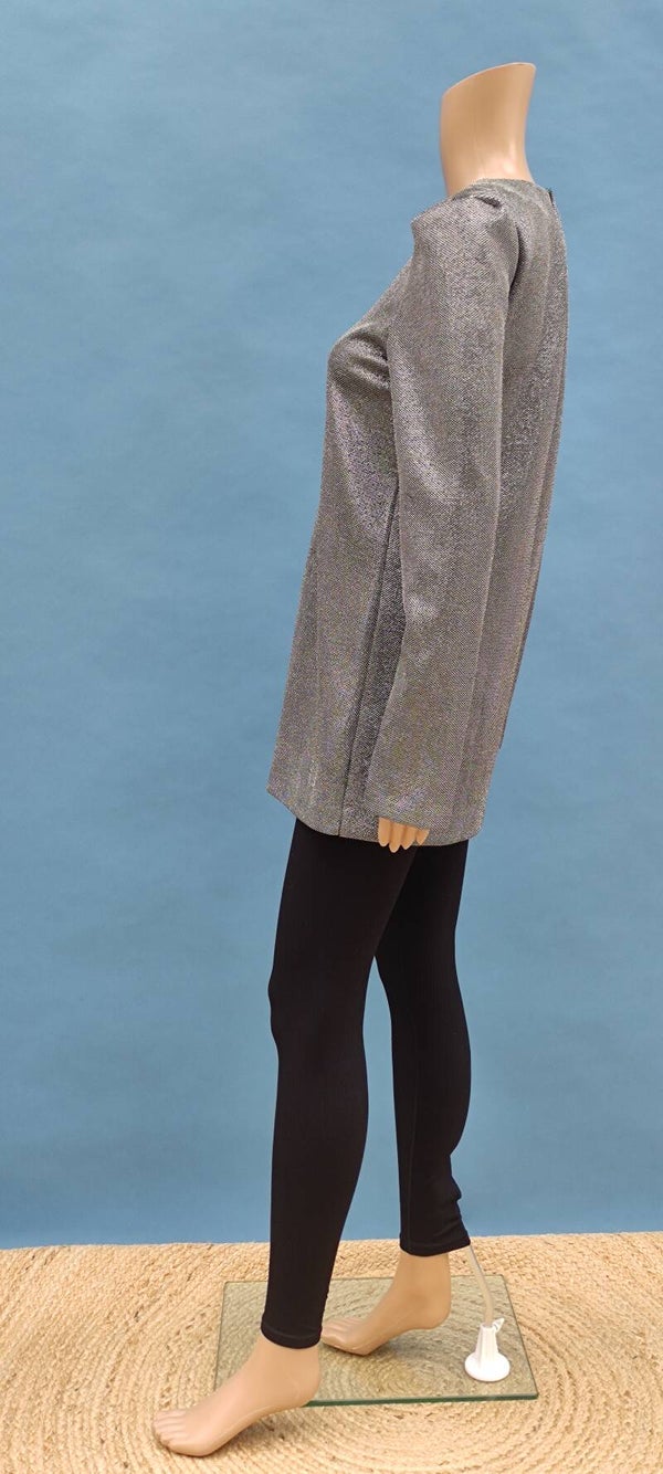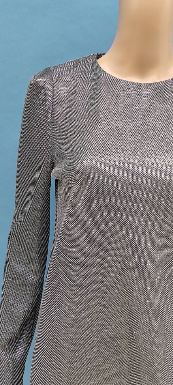 H&M Glitzer Minikleid langarm silber Gr. M (38)
