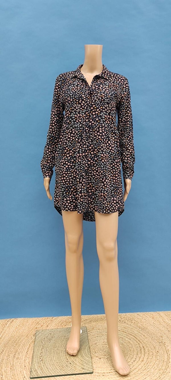 H&M Blusenkleid langarm schwarz/bunt mit Blümchen Gr. XS (34)