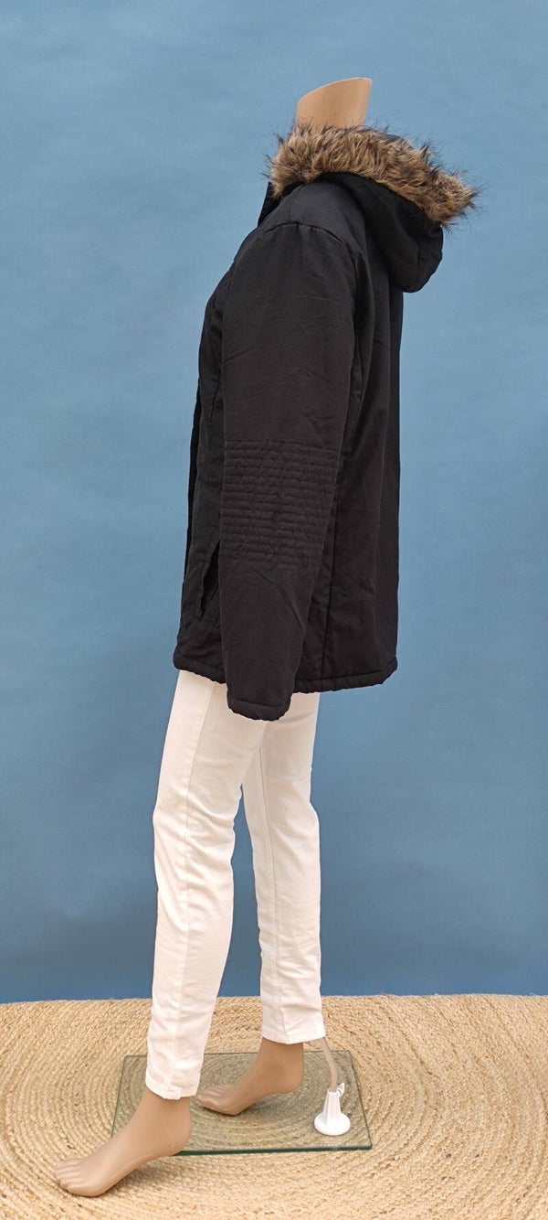 Style: Kapuze mit Kunstfell, 1 Innentasche mit Knopf, 2 Seitentaschen , Reißverschluss und Druckknöpfe vorne, leichte Innenfütterung
