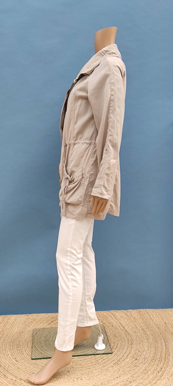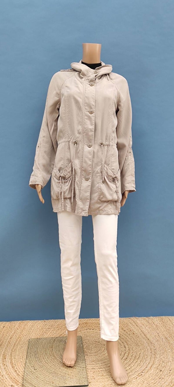 Style: Kragen mit Kapuze, Kordelband an der Schulter, 2 Vordertaschen mit Kordelband, Reißverschluss und Knöpfe vorne, Kordelband an der Taille, Druckknopf am Arm zum Höherstellen