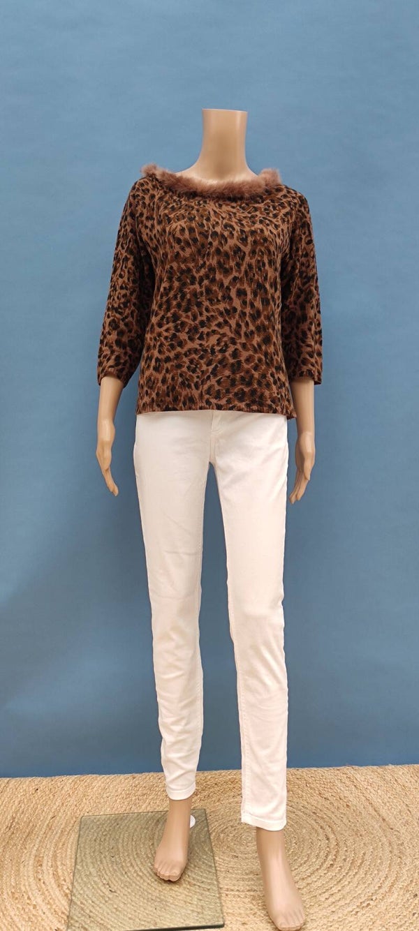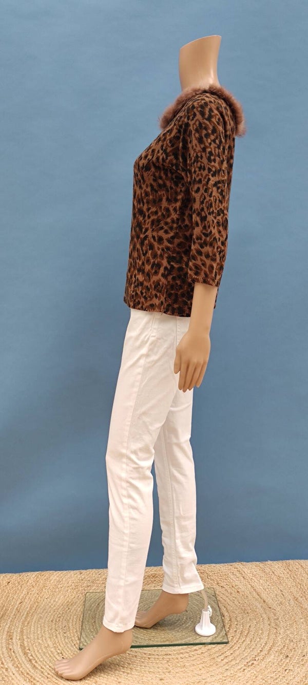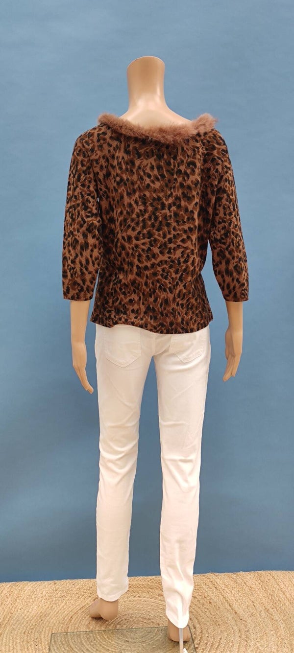 Pool by Stottrop Wollpullover 3/4 Arm braun Leopardenmuster Gr. S (36)