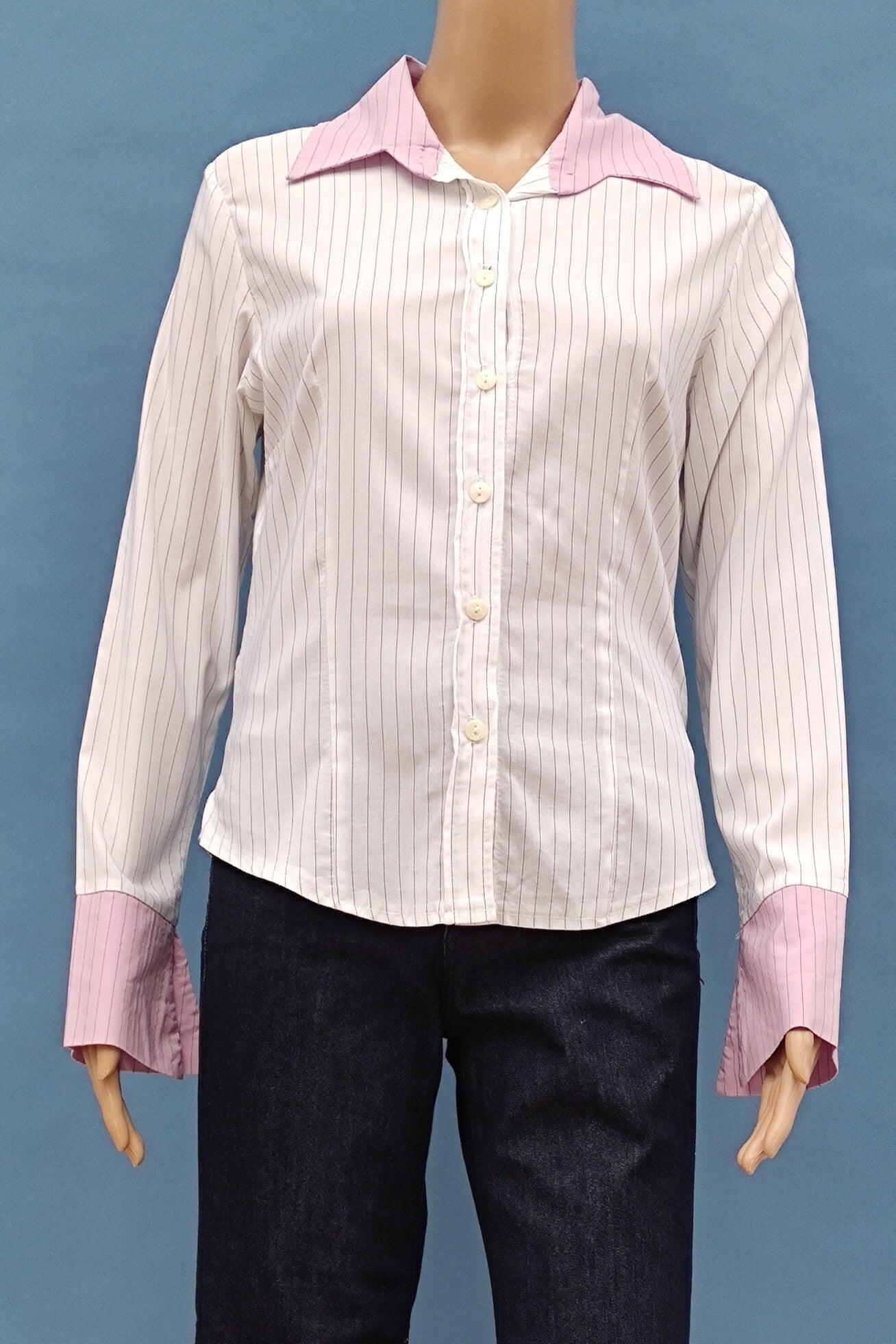 Dil Bluse langarm weiß/flieder mit Nadelstreifen Gr. M (38)