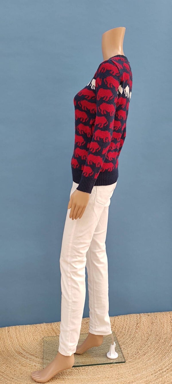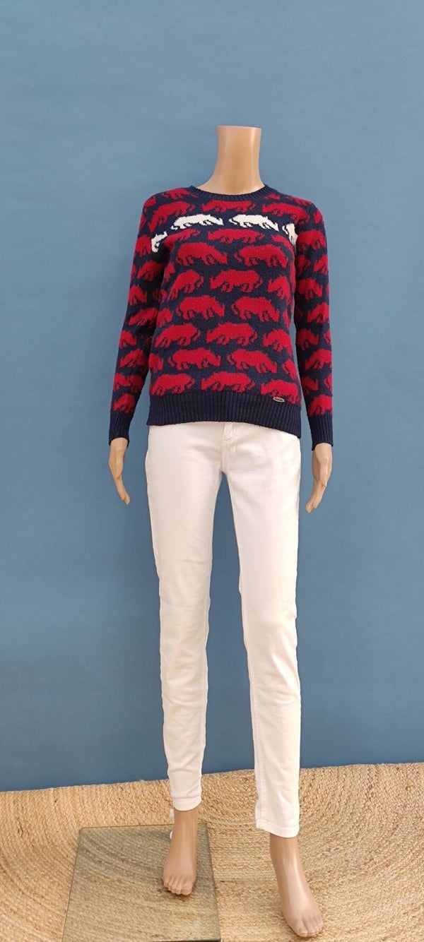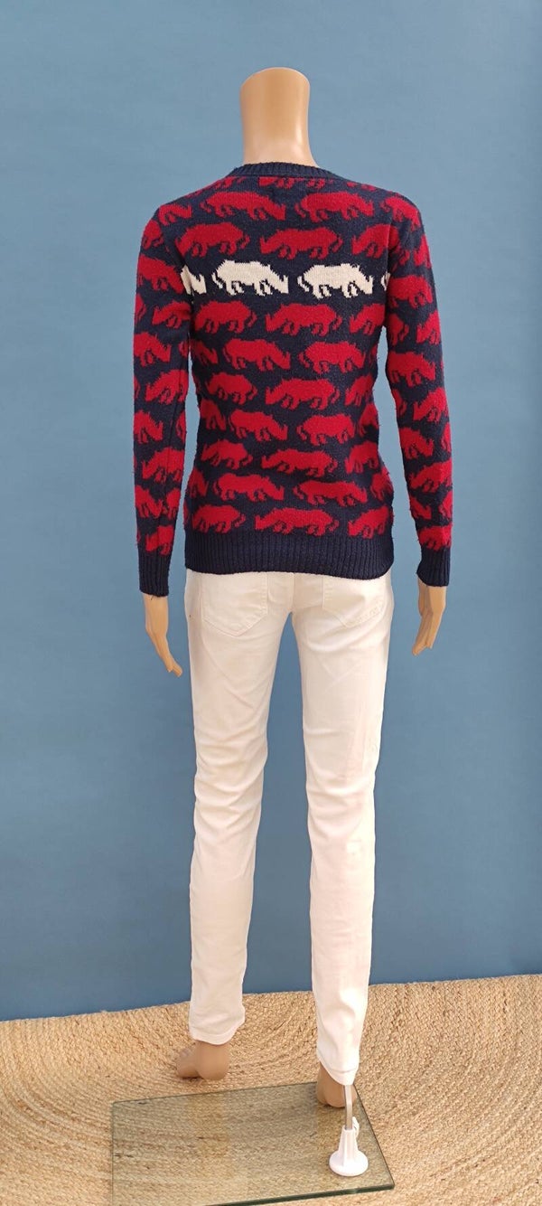 Ecko Unltd Strickpullover dunkelblau/rot/weiß mit Nashörner Gr. XS (34)