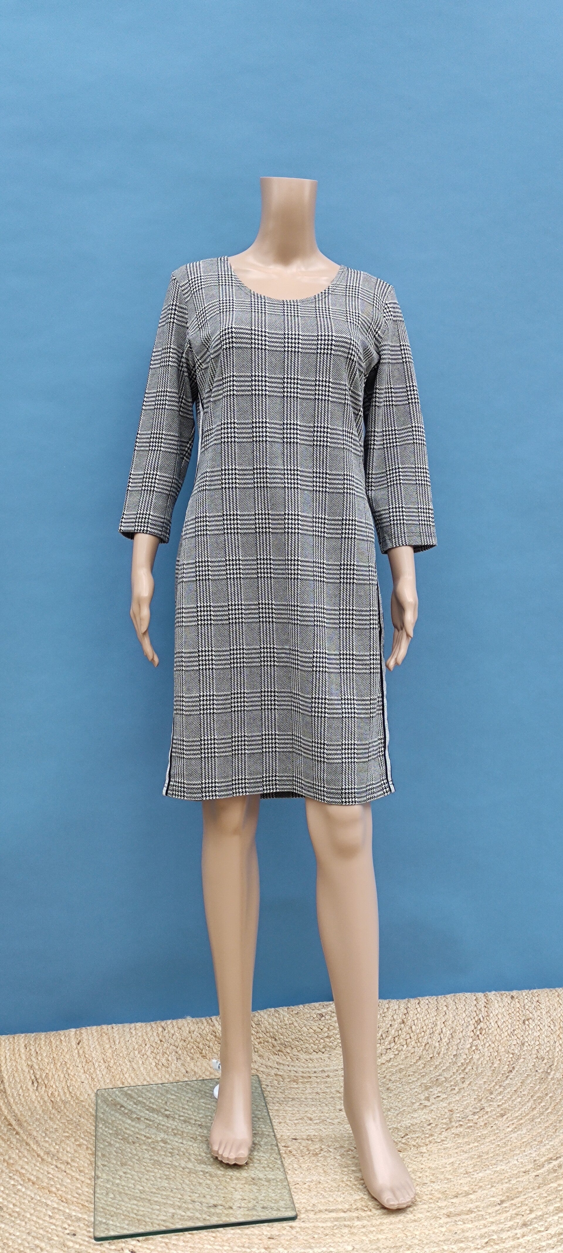 Style: Rundhals, 3/4 Arm, Hahnentrittmuster, Silberstreifen an der Seite