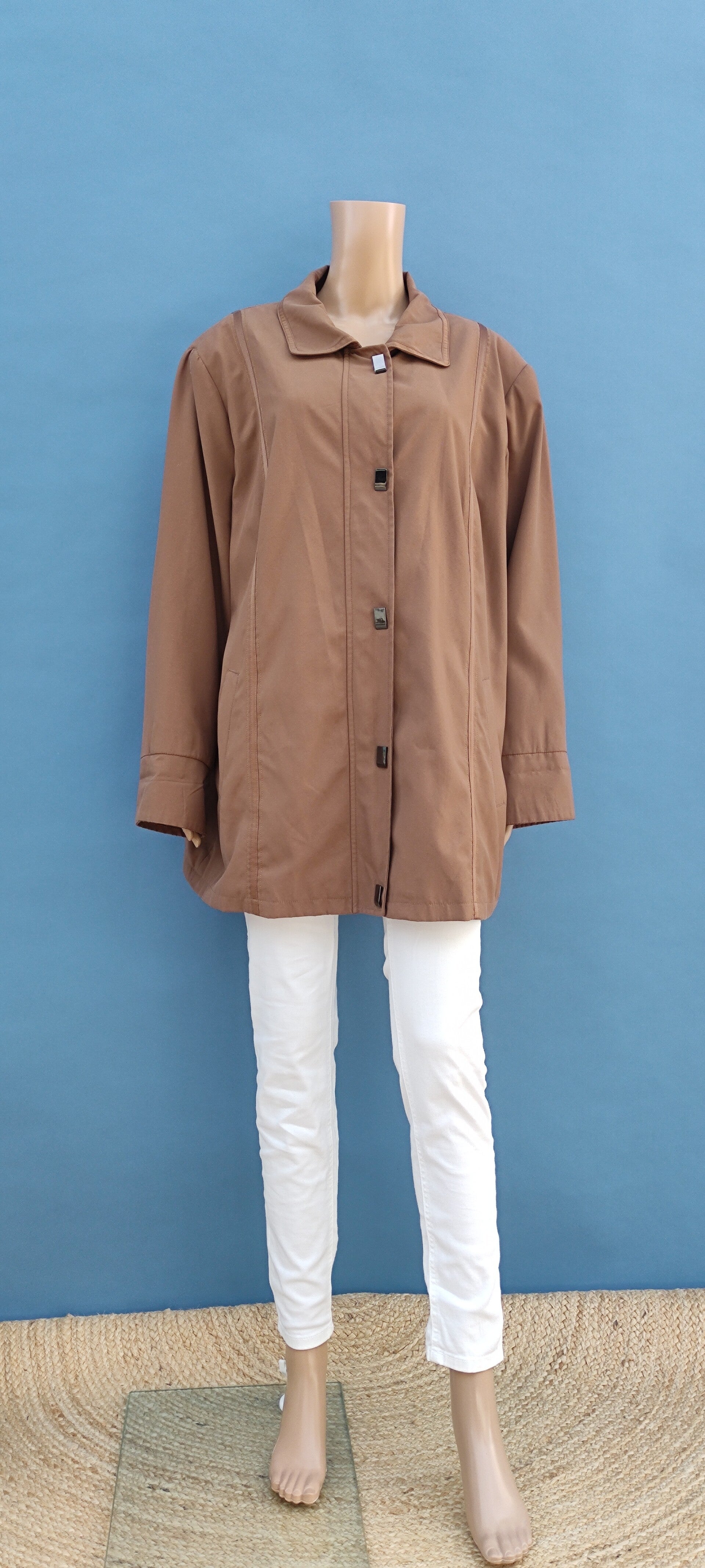 Style: Druck-Knopfleiste und Kragen, 1 Innentasche, 2 Seitentaschen, 1 Dekostreifen seitlich und mittig am Rücken, leichte Schulterpolster