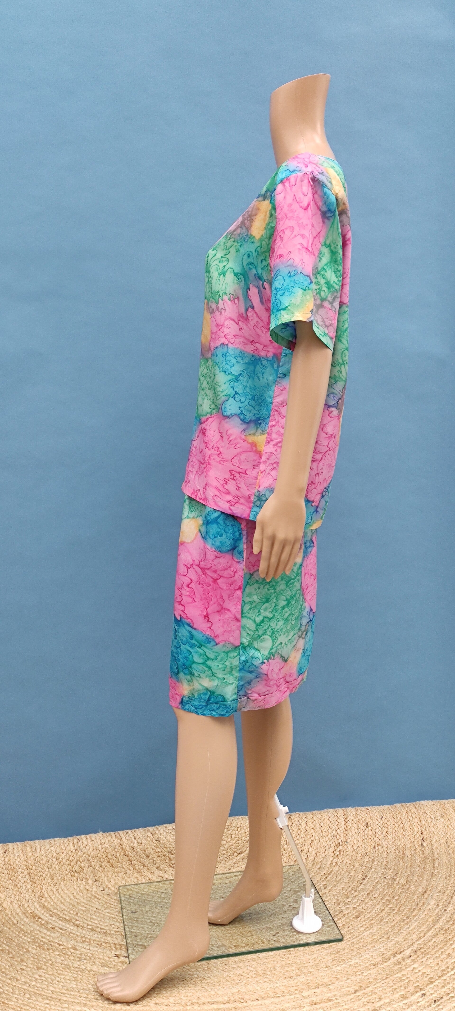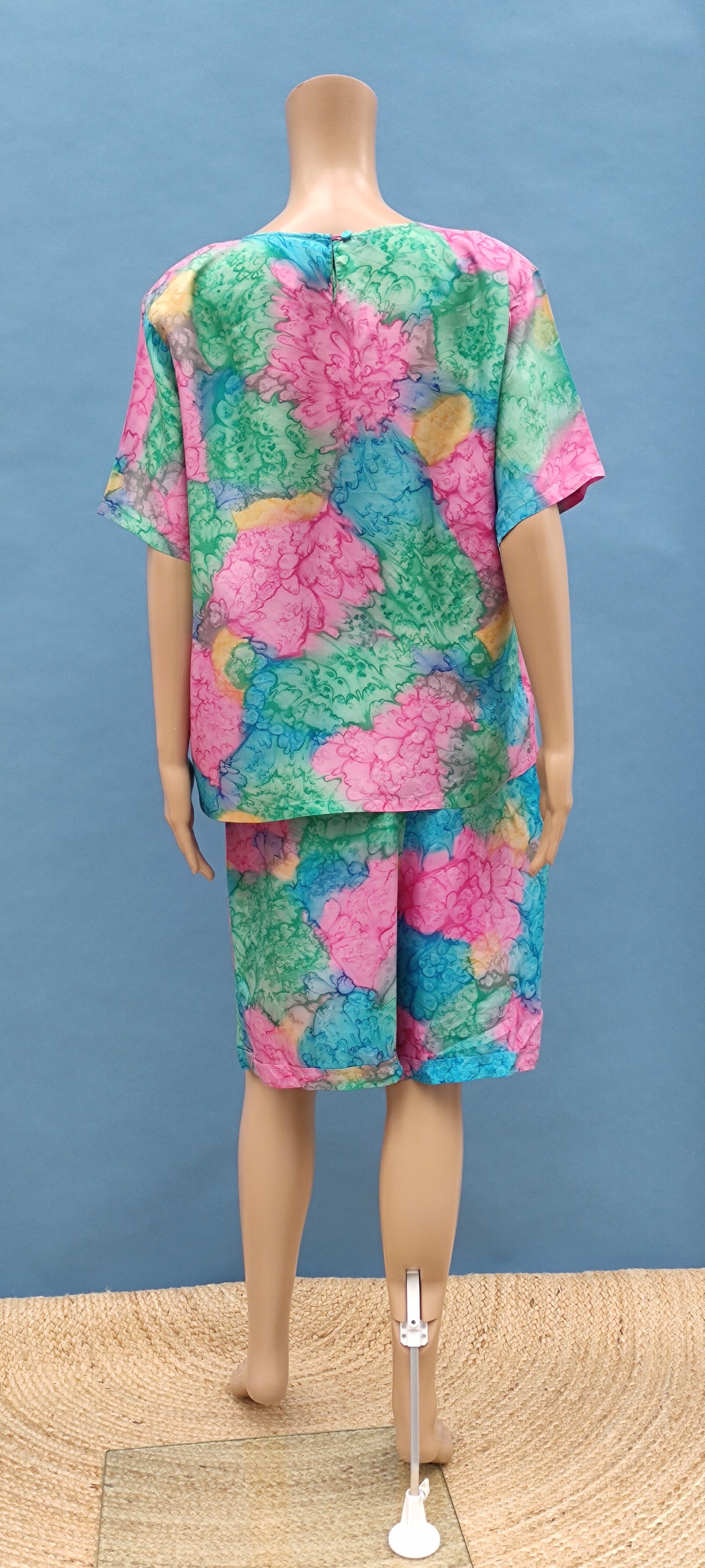 Ester vintage Seidenbluse kurzarm bunt Gr. XL (42)