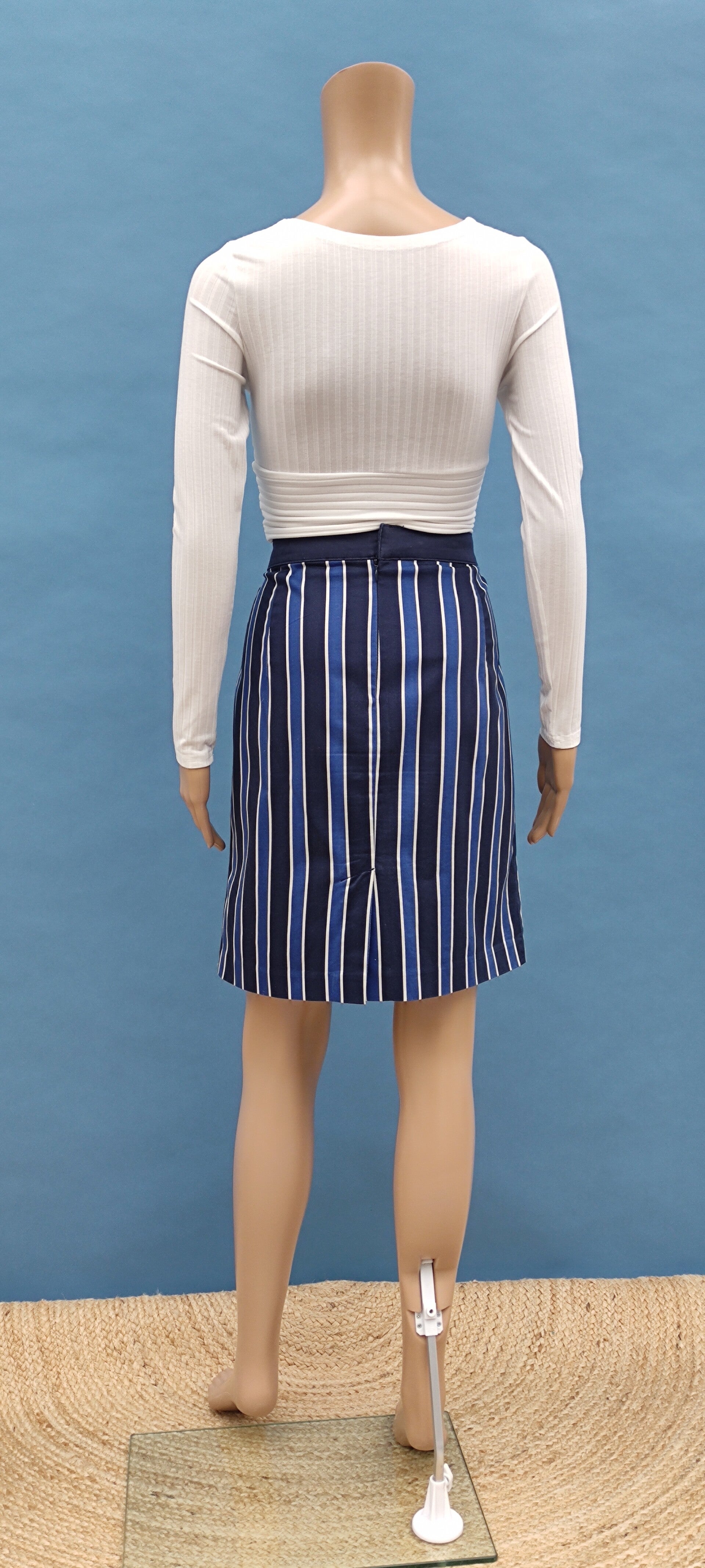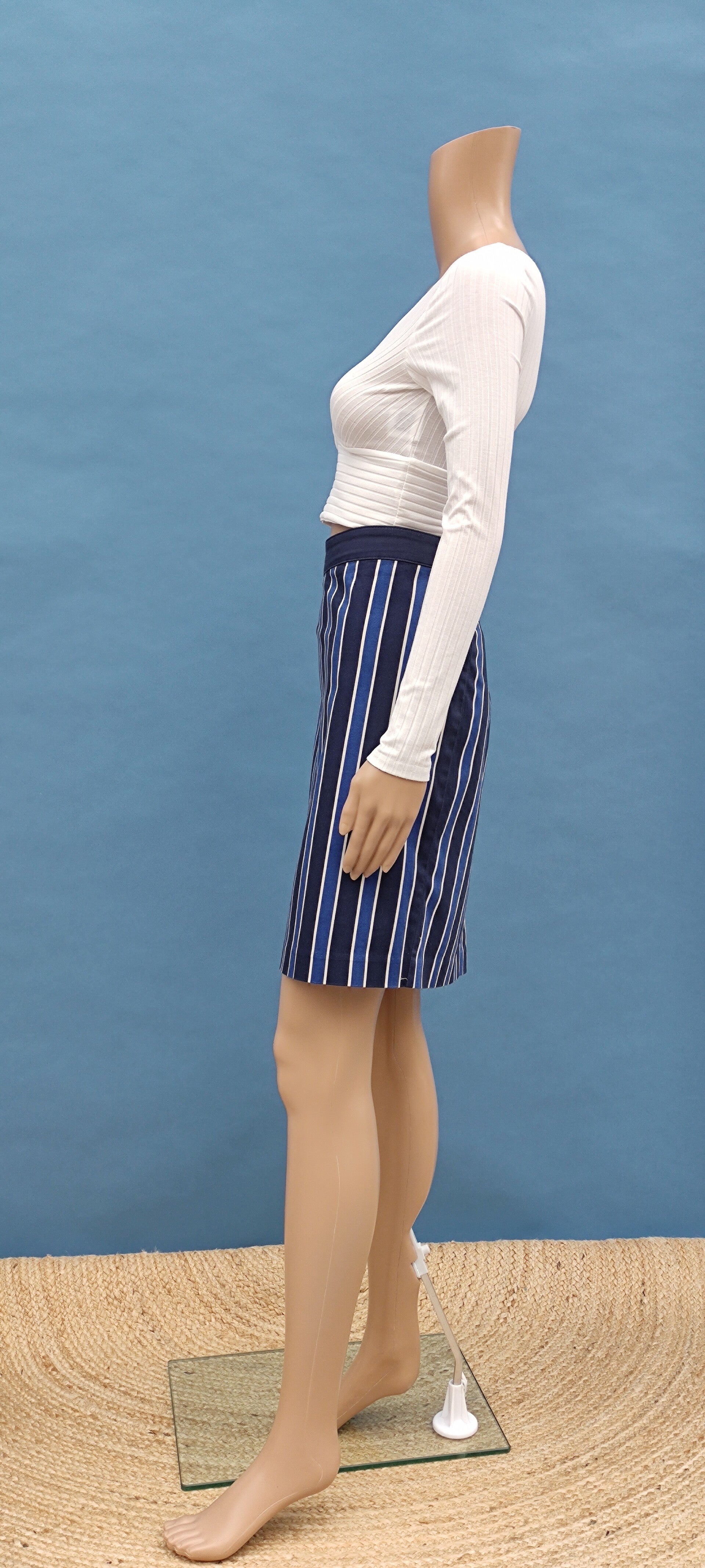 Style: Midi, Streifenmuster, Reißverschluss mit 2 Metallösen am Po, kleiner Schlitzz am Saum hinten